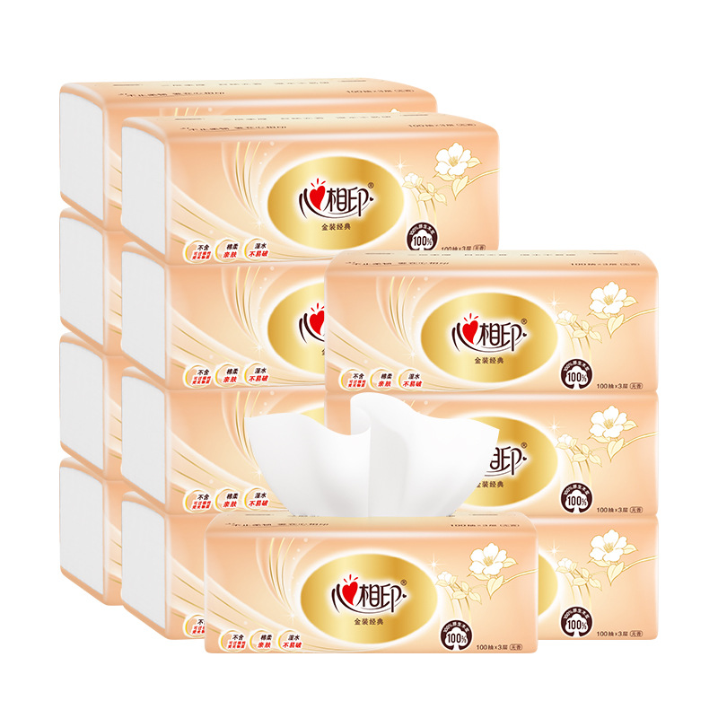 DT51100(DT23100)心香印クラシック100枚入り三層プラスチック包装フェイシャルティッシュペーパーナプキン