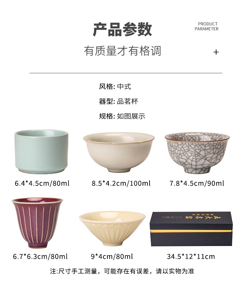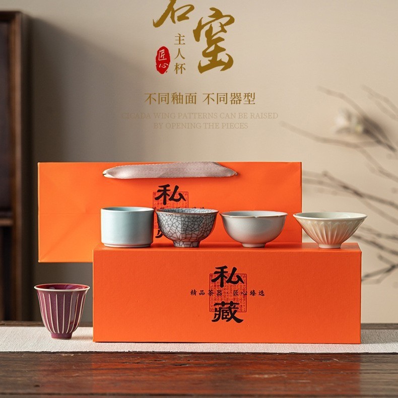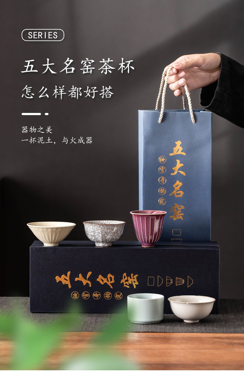 五大名窯茶道具大カップ礼箱セット陶磁器茶わん茶碗汝磁器主人杯文創伴手礼