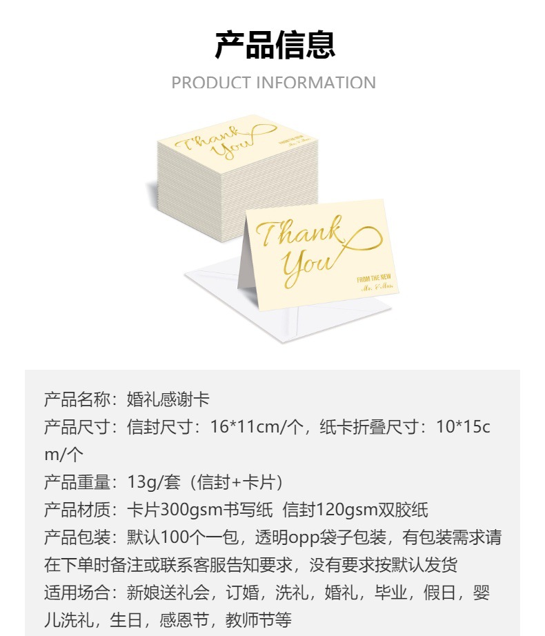 アマゾンの人気スポットWedding Thank You Card箔押し結婚式感謝カードセット封筒