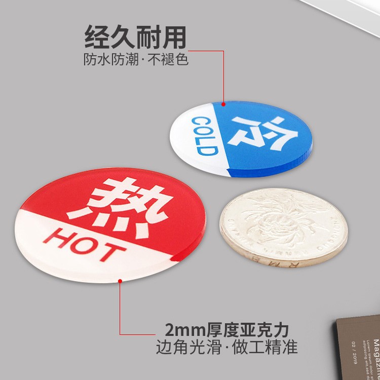 冷热浴室冷水标贴标识标牌家用热水牌子亚克力标志牌水龙头提示牌