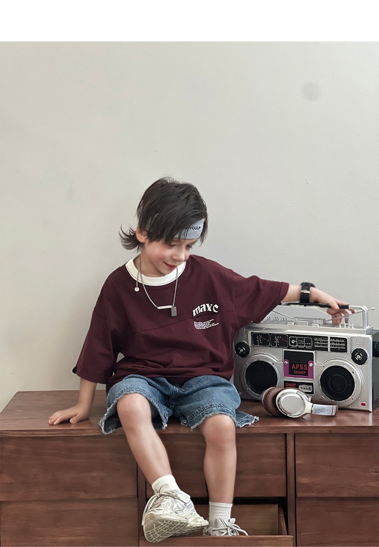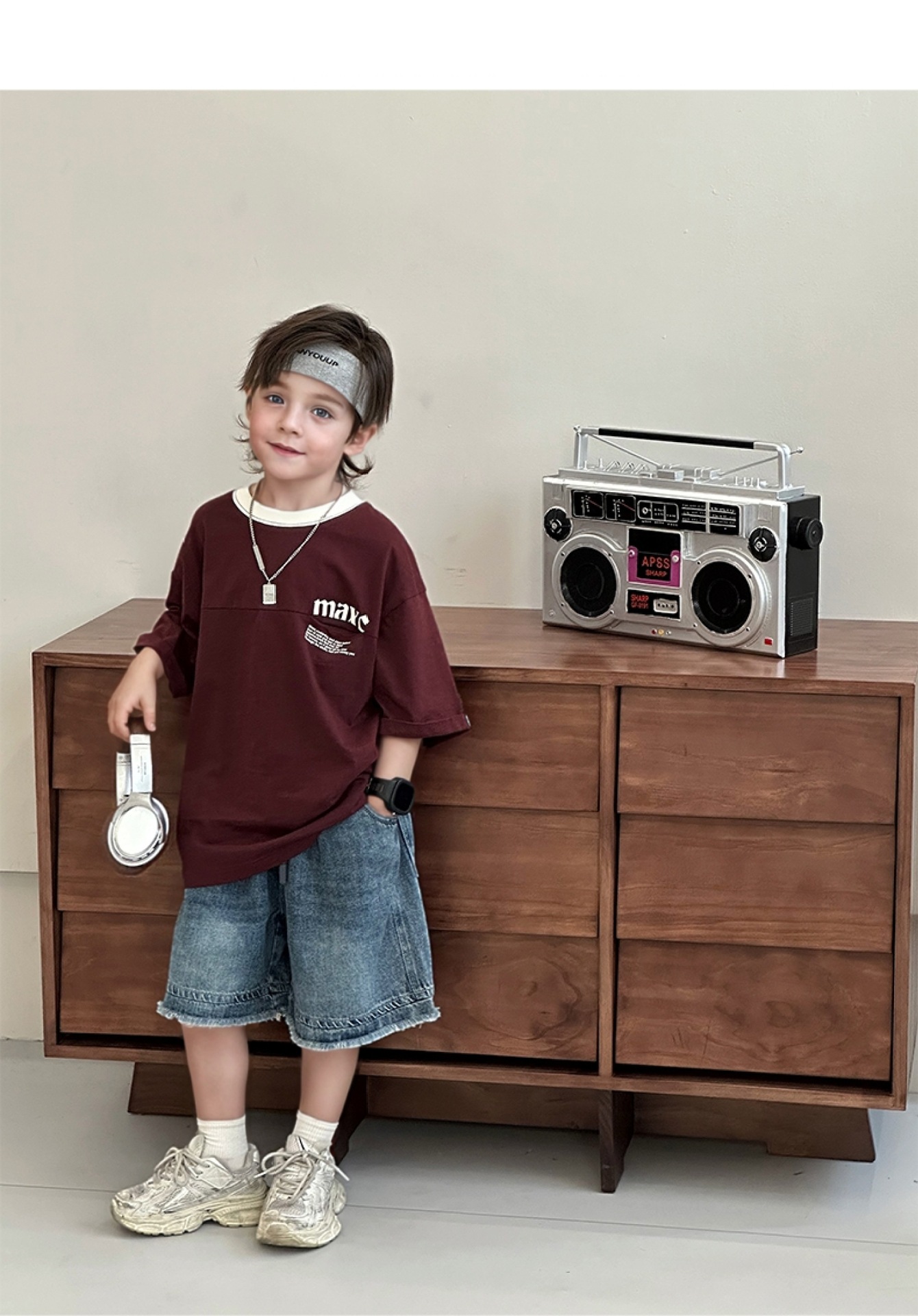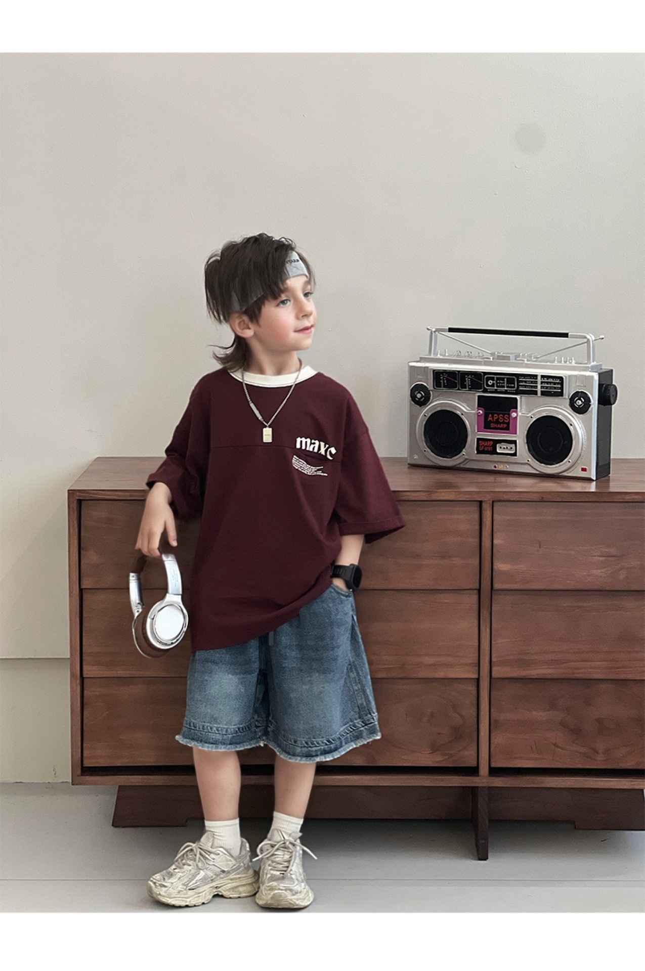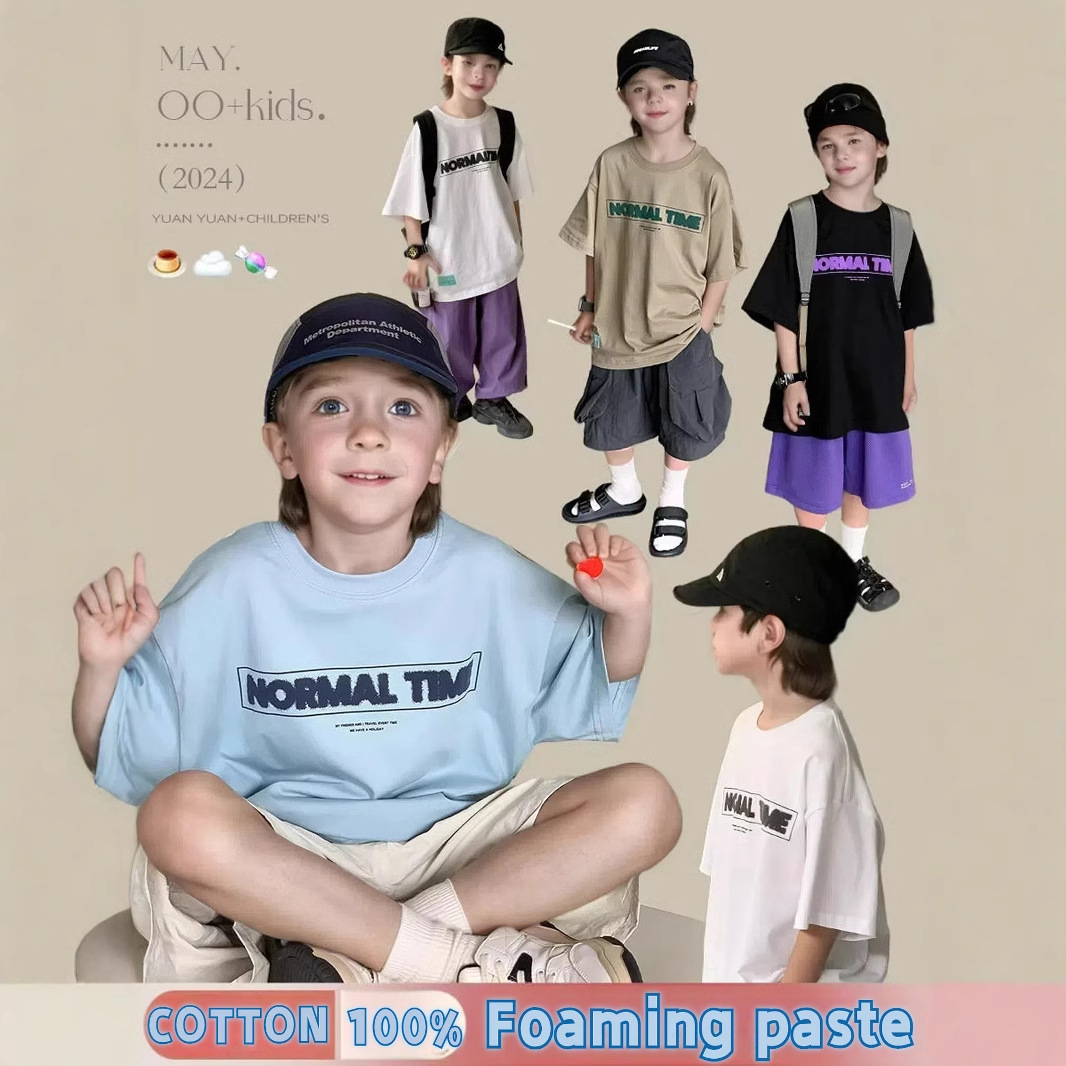 春夏物 男の子 大きな子供向け 丸首Tシャツ 半袖 2025年新作 おしゃれな子供用半袖 韓国風 ベビー服 トレンドTシャツ