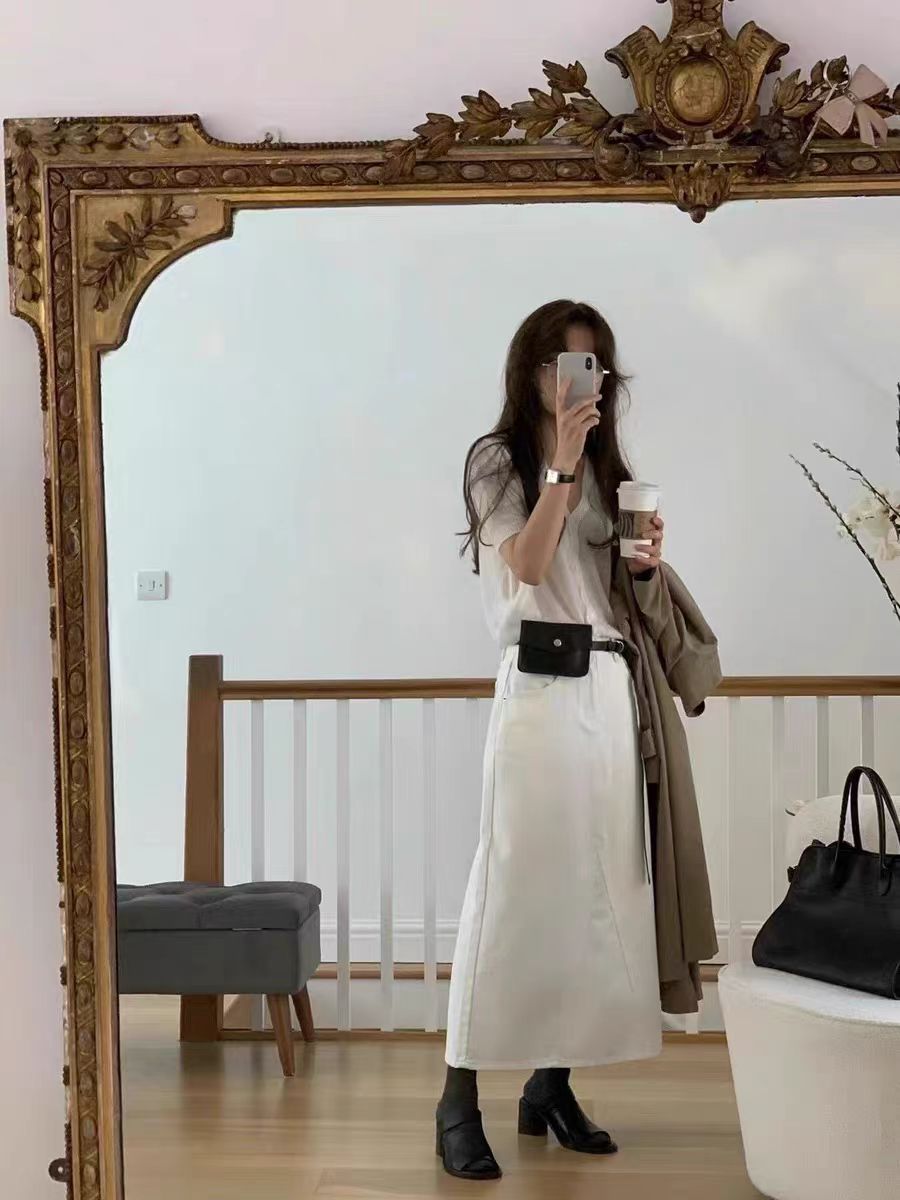韓国ins博主は同じ二重ベルトベルトを持っています。ベルト式のベルトを包んでいます。