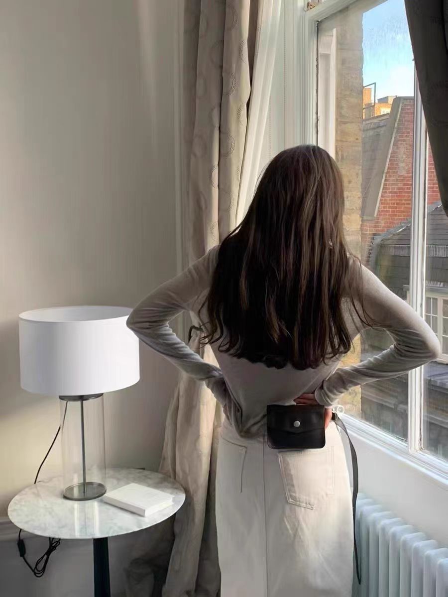 Insネットの赤い本の同じ種類のミニの小さい方は秋の服を包んで小さい腰のカバンを組み合わせてベルトの腰の間を調節することができます。