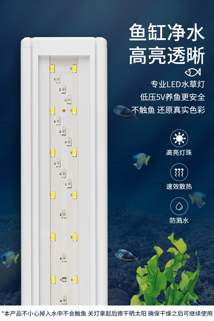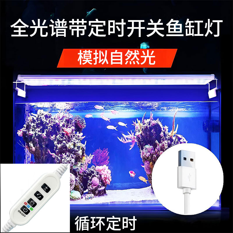 USB鱼缸灯LED水族照明定时循环水草灯爆藻灯夹灯多色切换乌龟灯