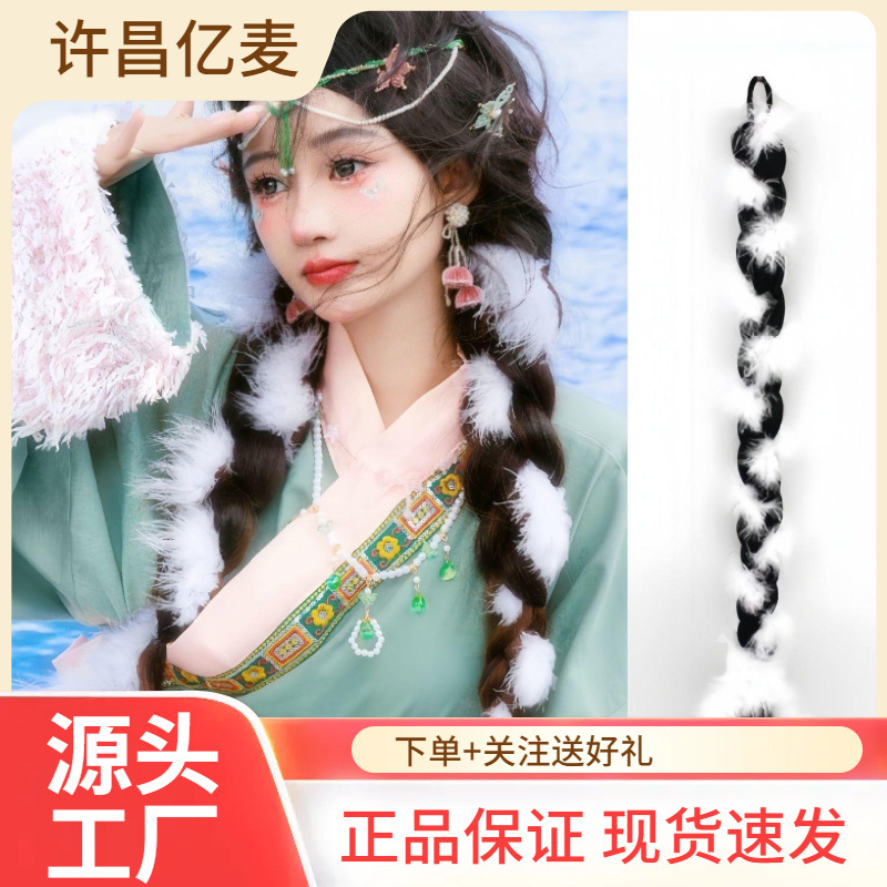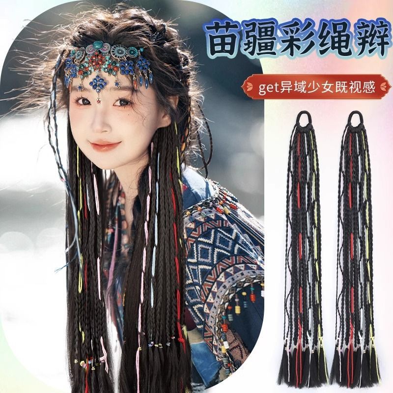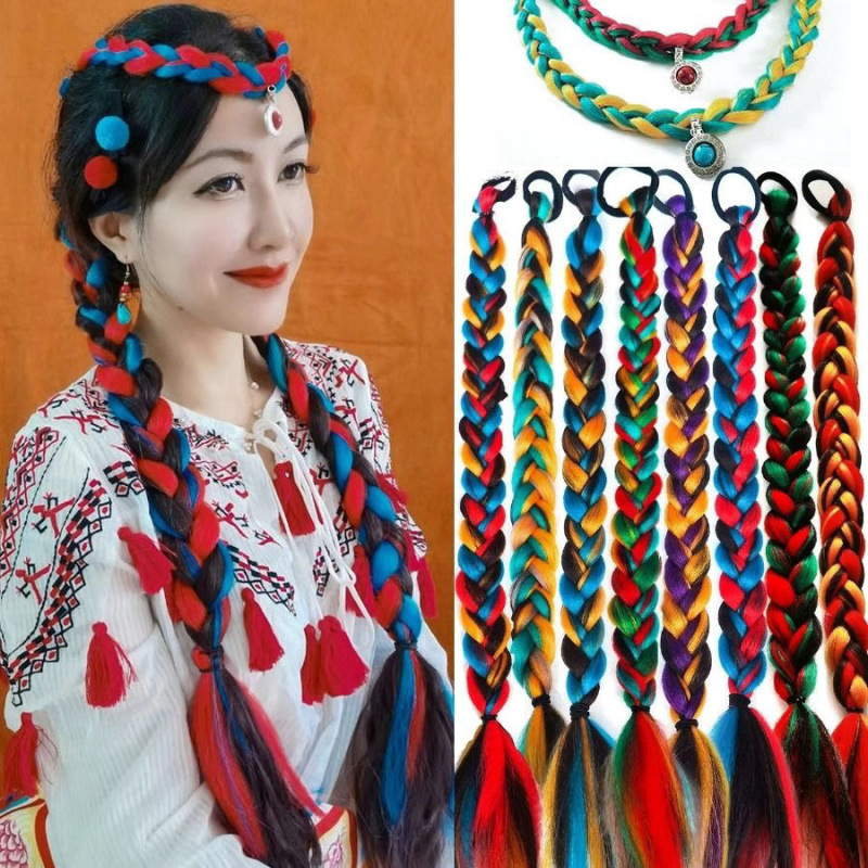 チベットの頭飾りウィッグポニーテールチベット超ロングカラフルな編み込みチベット服エスニックスタイルインターネットセレブヘアアクセサリー