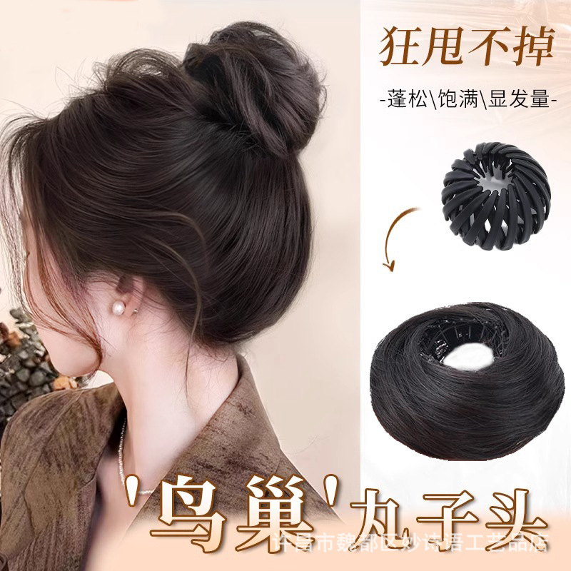 鳥の巣の団子の頭のかつらの髪の輪の女性は勝手に収縮して盤の神器のシミュレーションの髪のかつらの髪の包みを作ります。