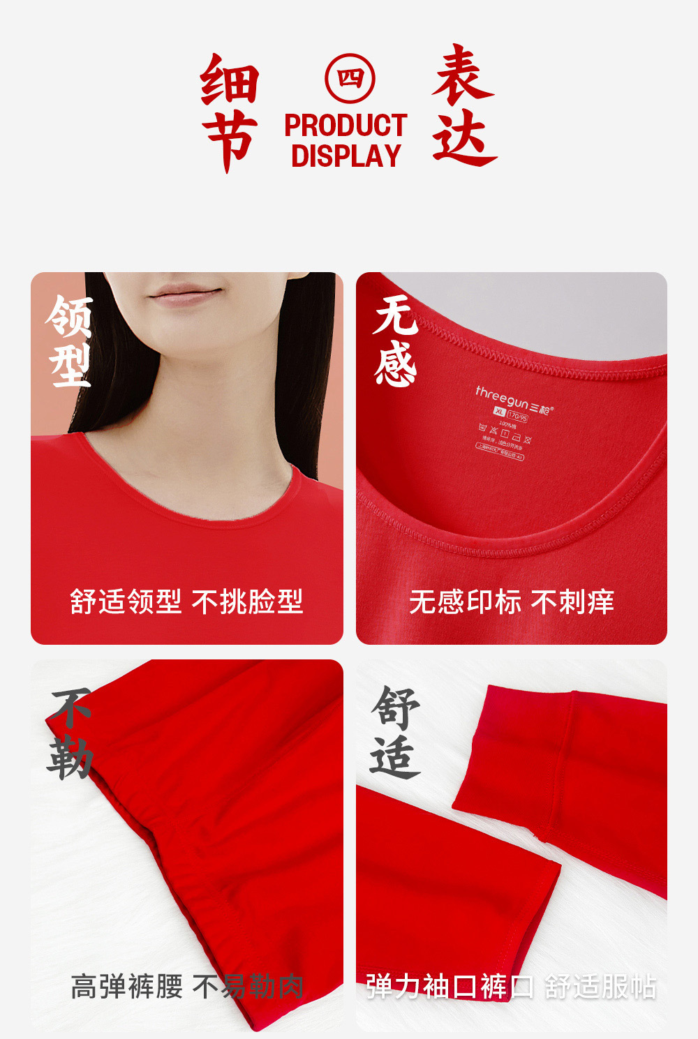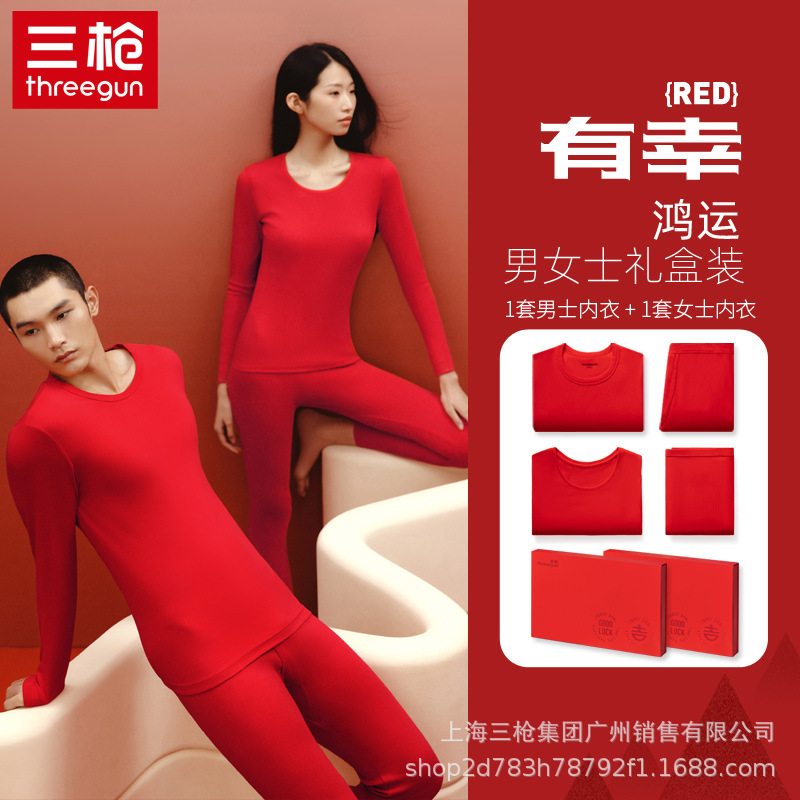 三銃保温下着男丸首舒肌綿本命年吉慶装鴻運秋衣秋ズボン保温下着セット