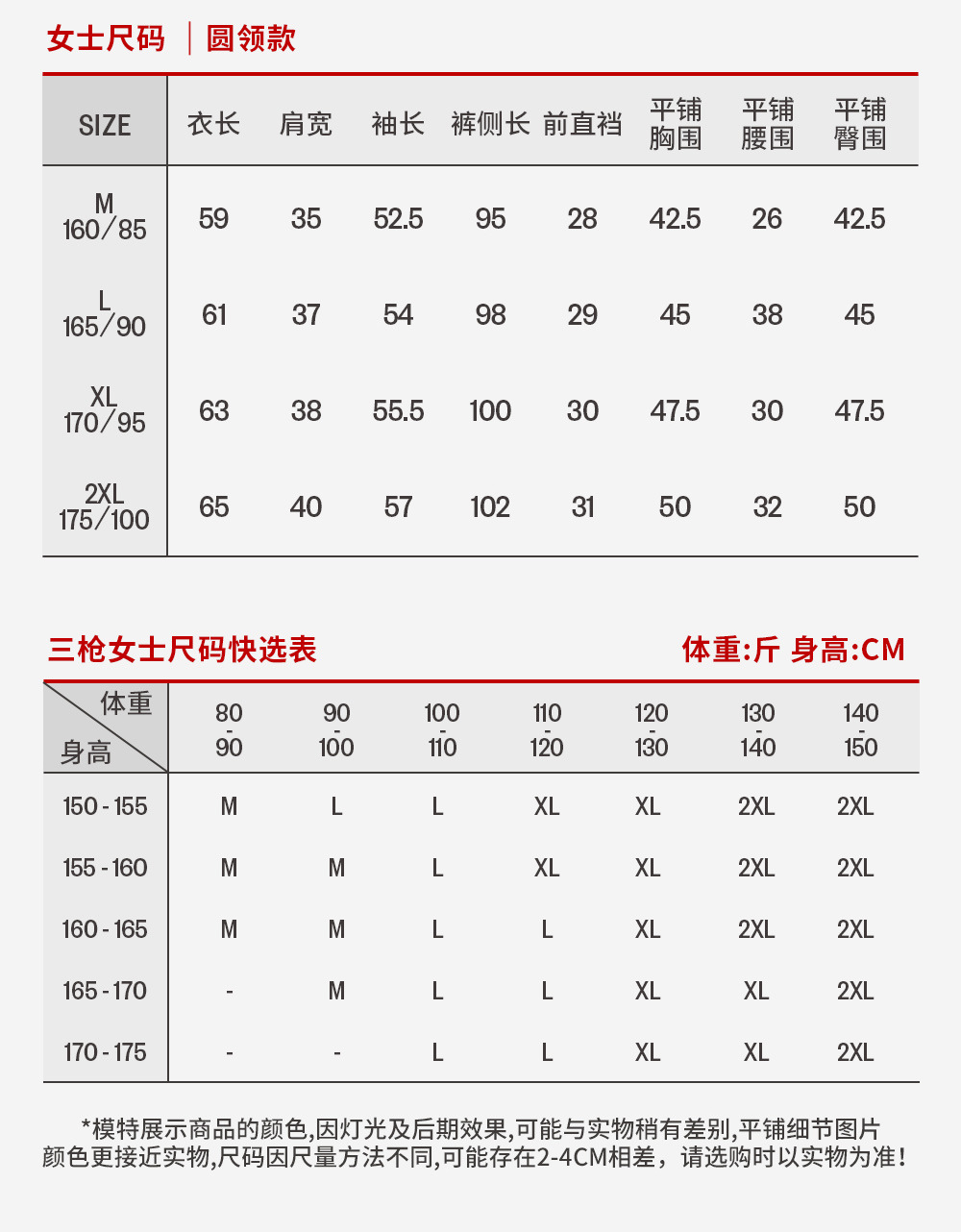 三枪秋衣 レディース保温下着 シングルトップス 丸首 恒温 中厚綿 送料無料