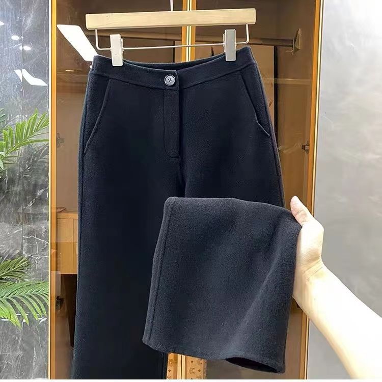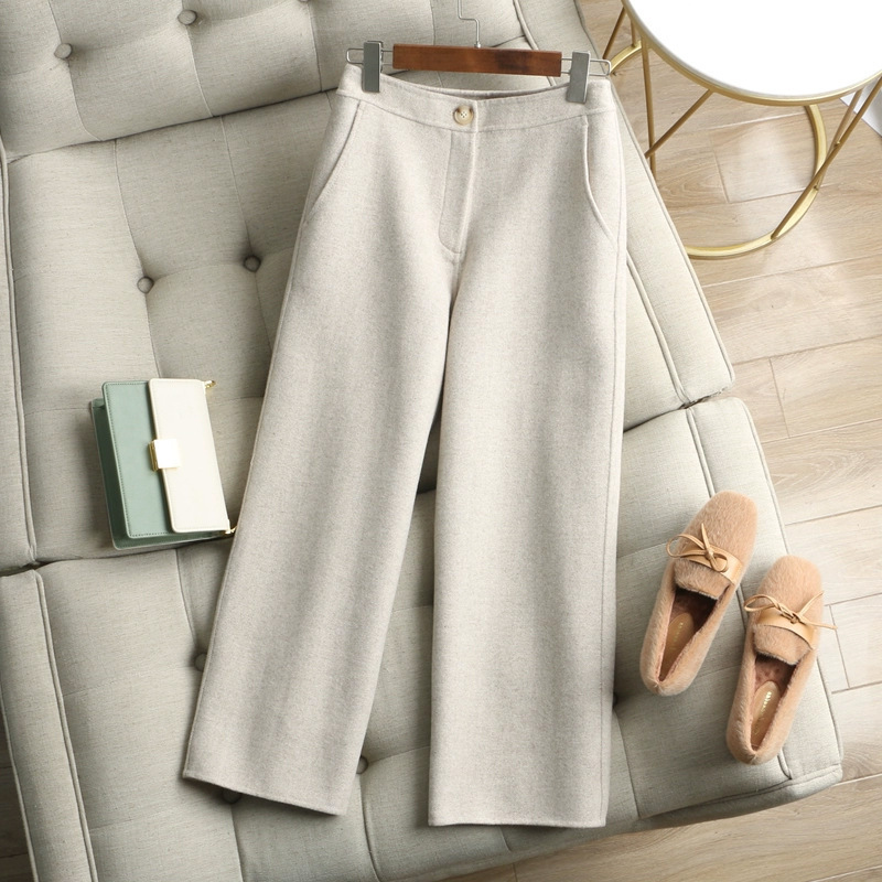 レディース新作両面ウールストレートワイドパンツ2025秋冬小柄さん向けハイウエストドレープスリムカジュアルパンツ女性向けトレンド