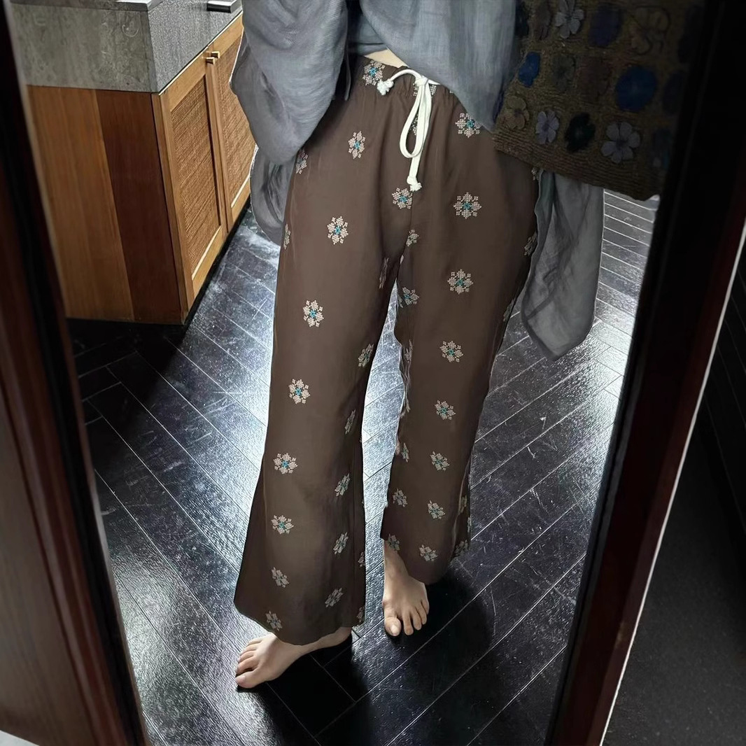 レトロな小香風のワイドパンツの女性秋冬の新型のスパンコールの太い花のデザイン感がゆったりしています。