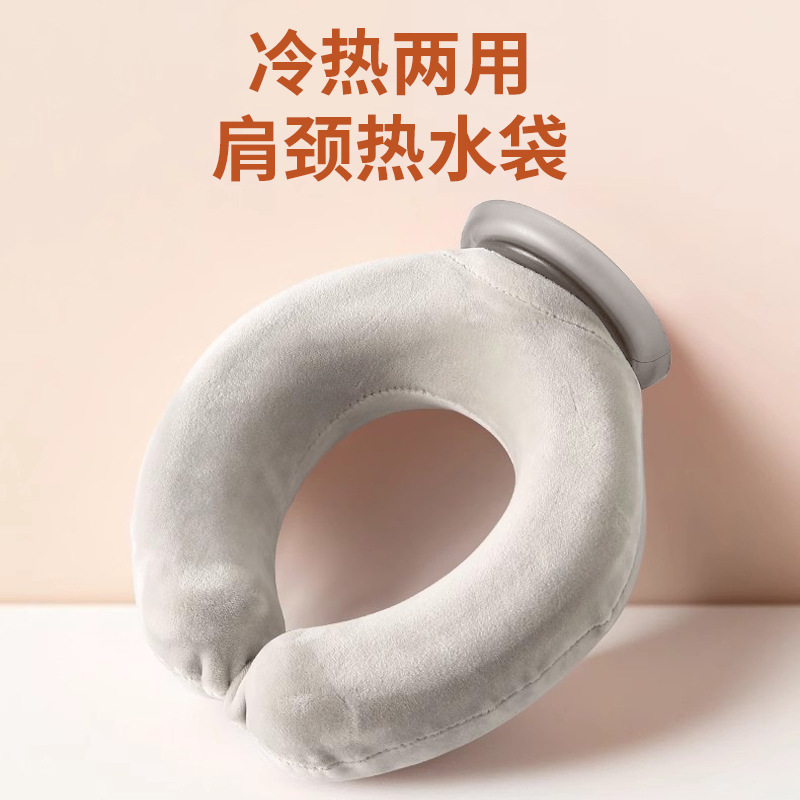 新款小U型暖水袋挂脖式注水防爆护颈神器批发冷敷热敷两用热水袋