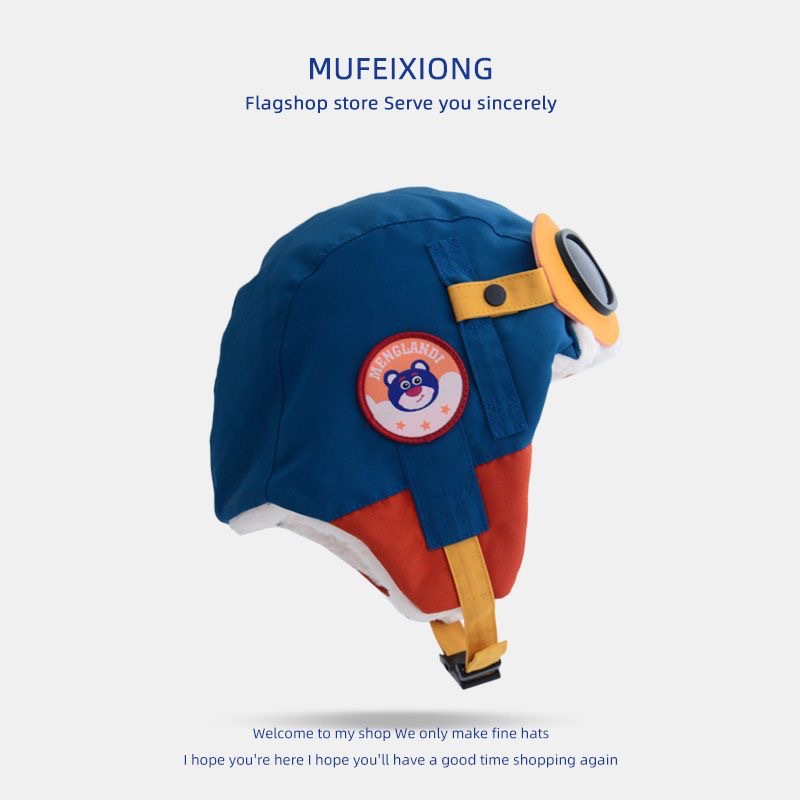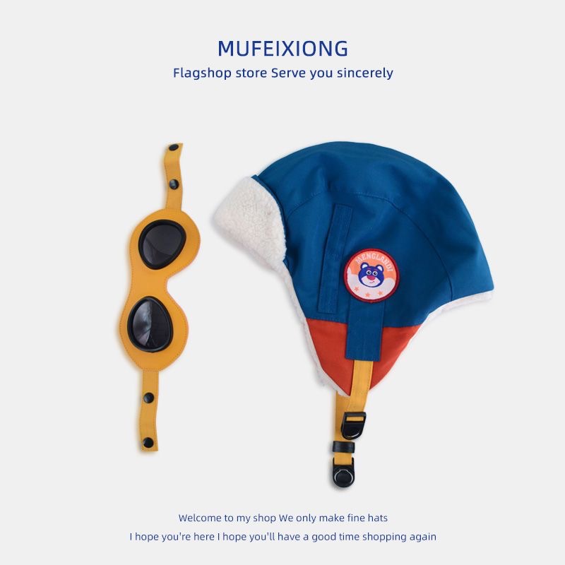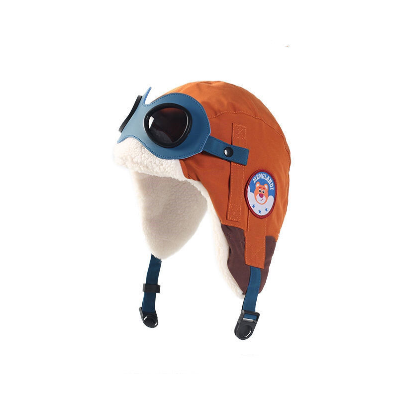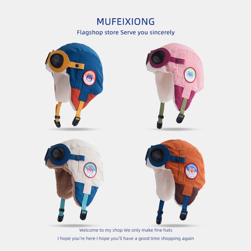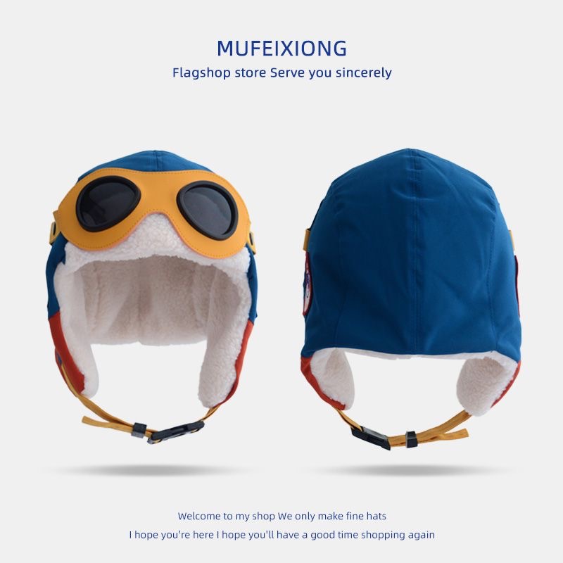 儿童飞行帽飞行员眼镜雷锋帽子女秋冬亲子男童加绒保暖护耳帽圆顶