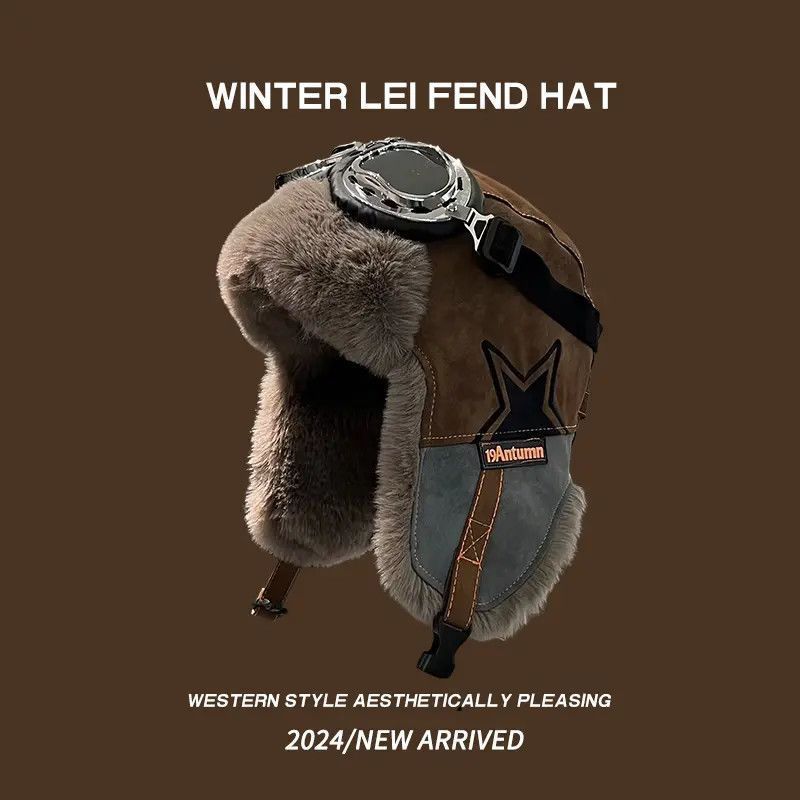 2025冬季帽子男女复古雷锋帽飞行员帽子保暖加绒护耳骑行机车帽子