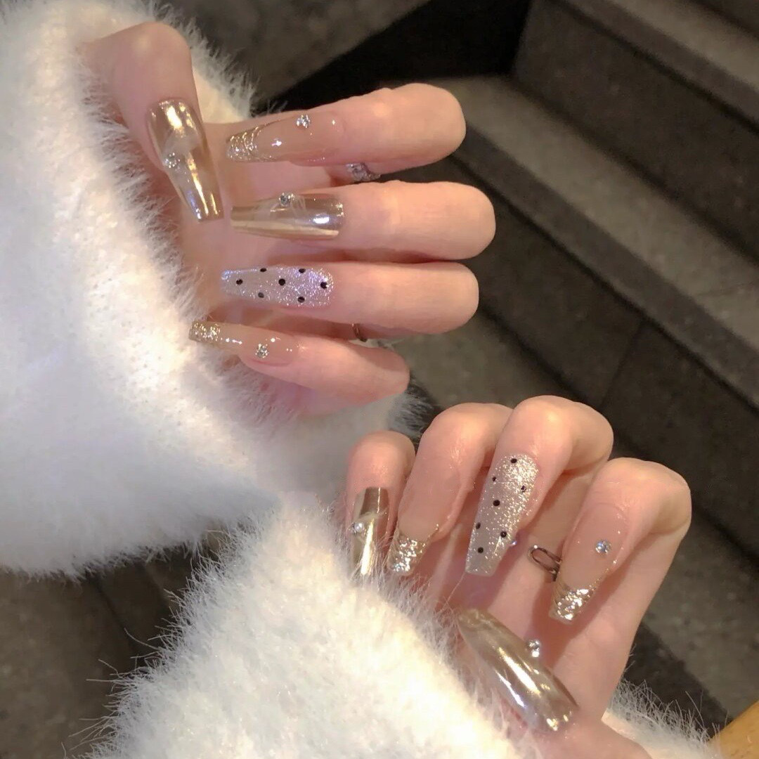 イーホーネイルアート 秋冬グラデーションキャッツアイキラキララインストーン付きゆったり週末新作美白高級感つけ爪