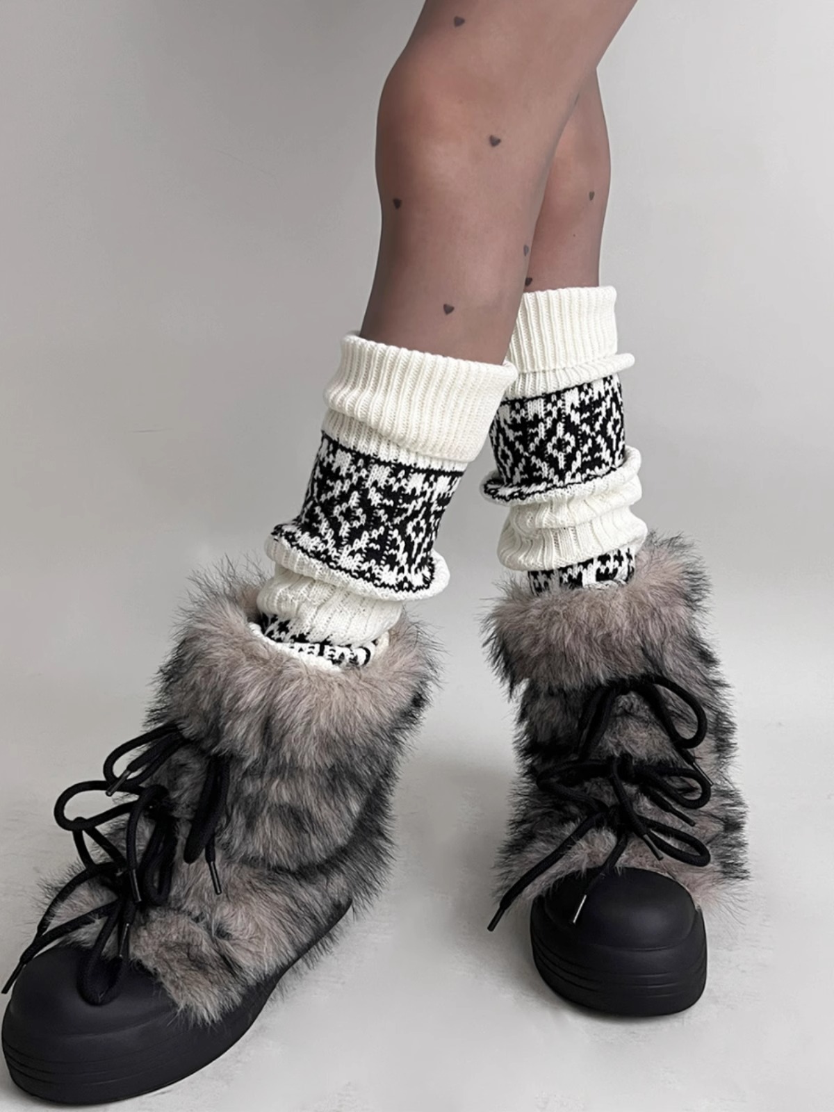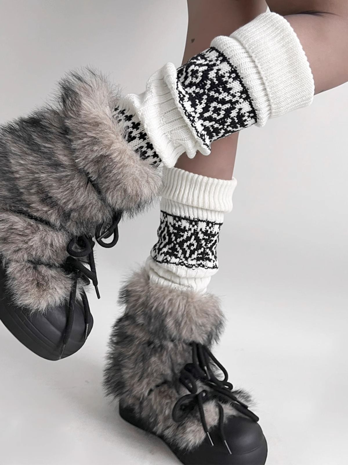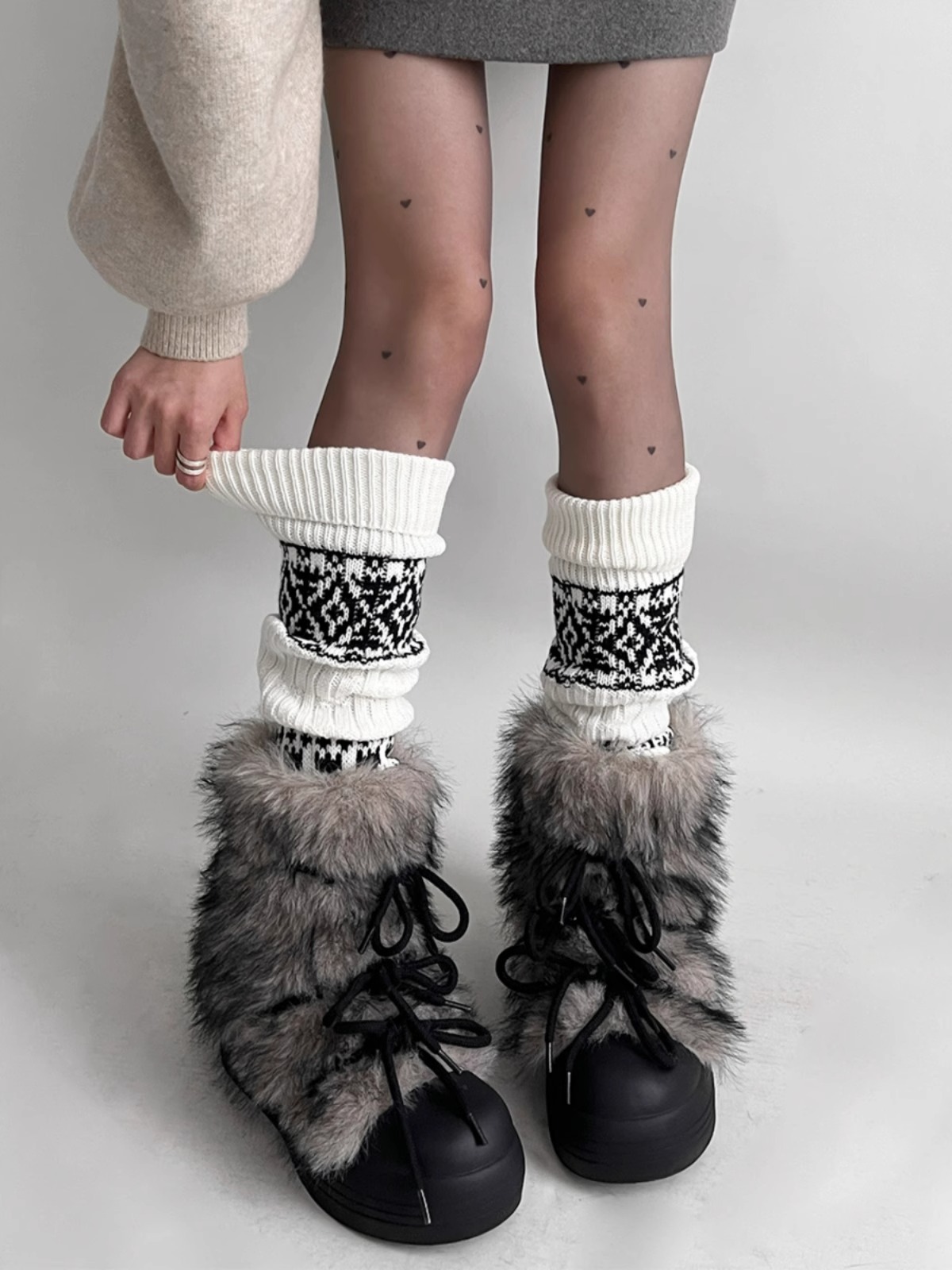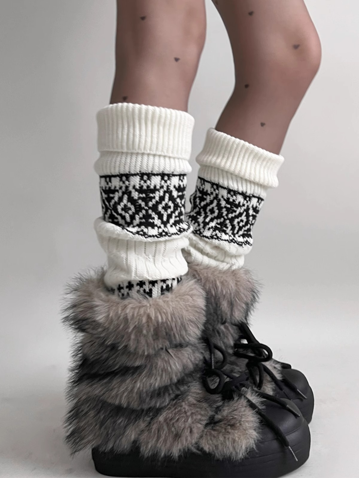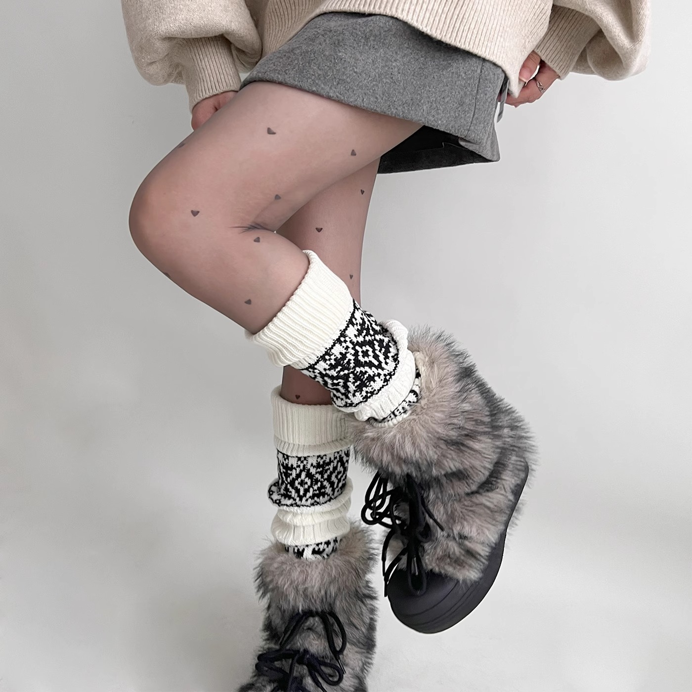 秋冬の多色のニットの足のカバーy 2kギャルの亜文化の金属の標準の毛糸の靴下のカバーの白い厚い山の靴下の女性