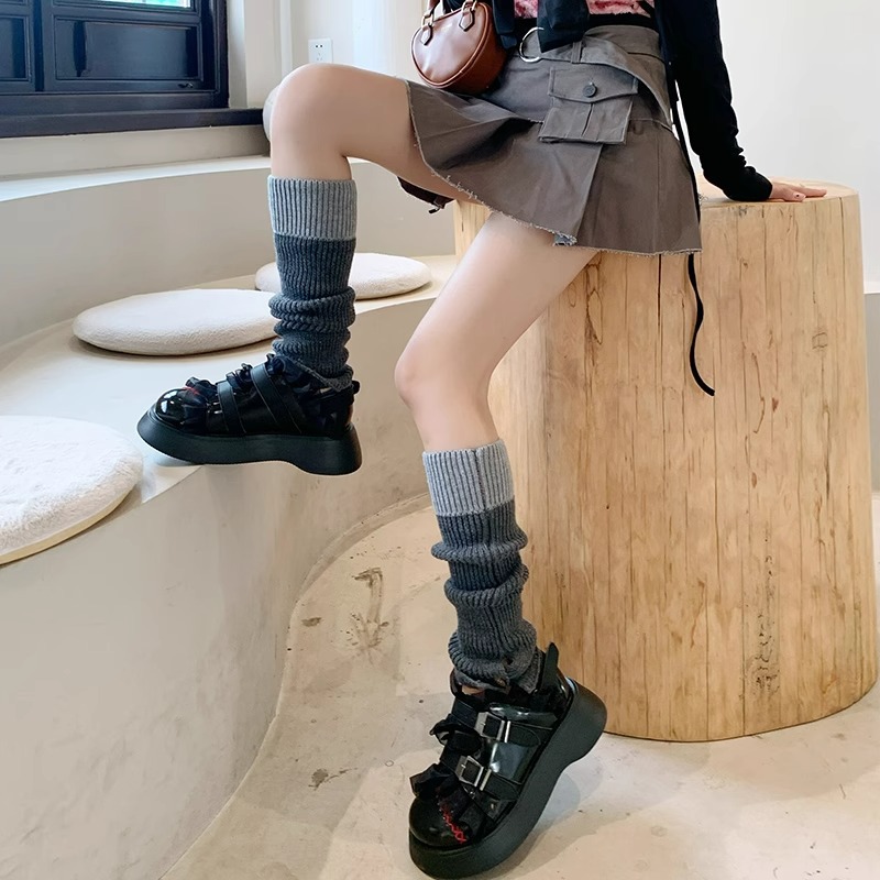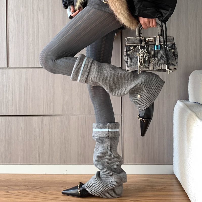 秋冬保温縦編み靴下カバー日系jk少女ふくらはぎ靴下insギャル防寒亜文化脚カバー