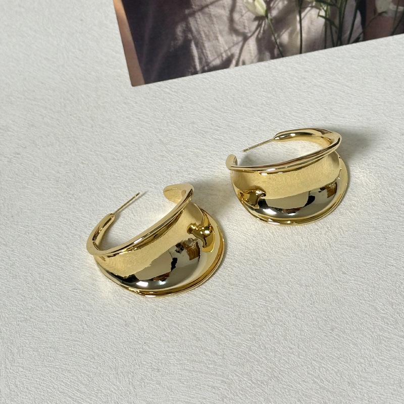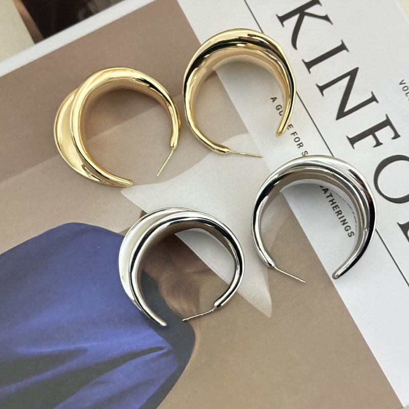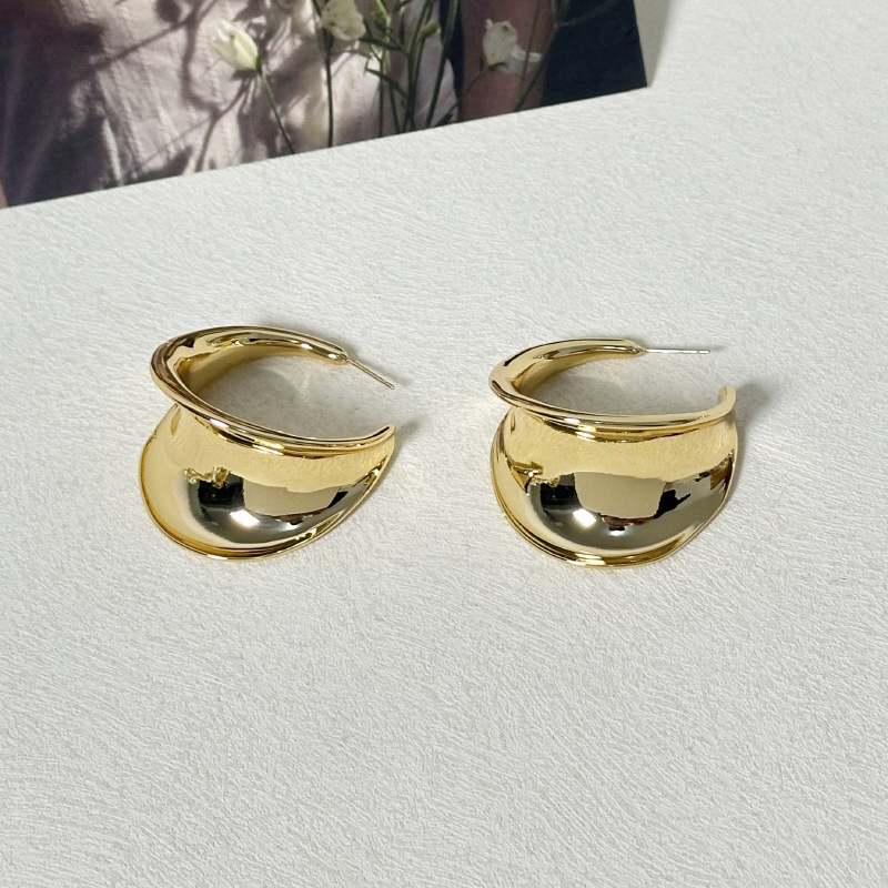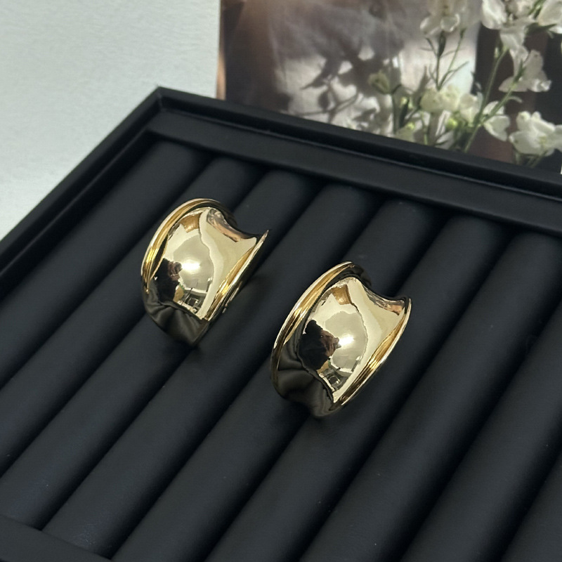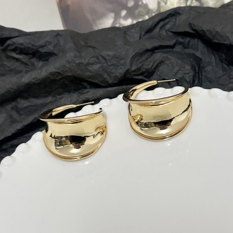 欧米の楊林の軽い豪華な高級感の金属の明るい顔の丸い線のイヤリングの冷たい風の気質の耳の輪の耳飾りの女性
