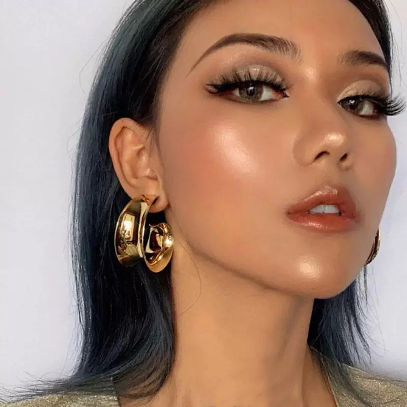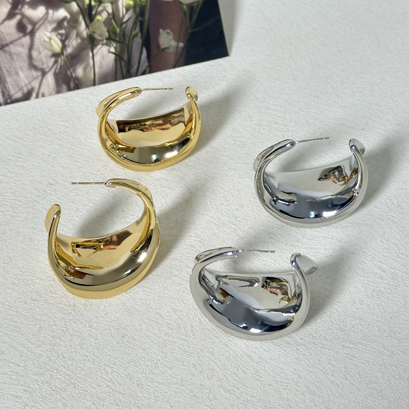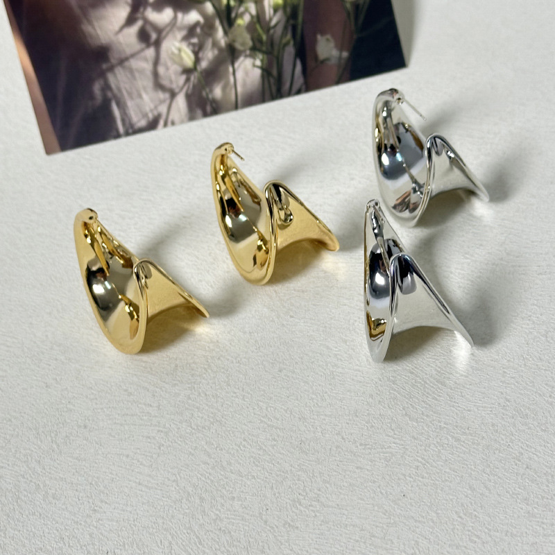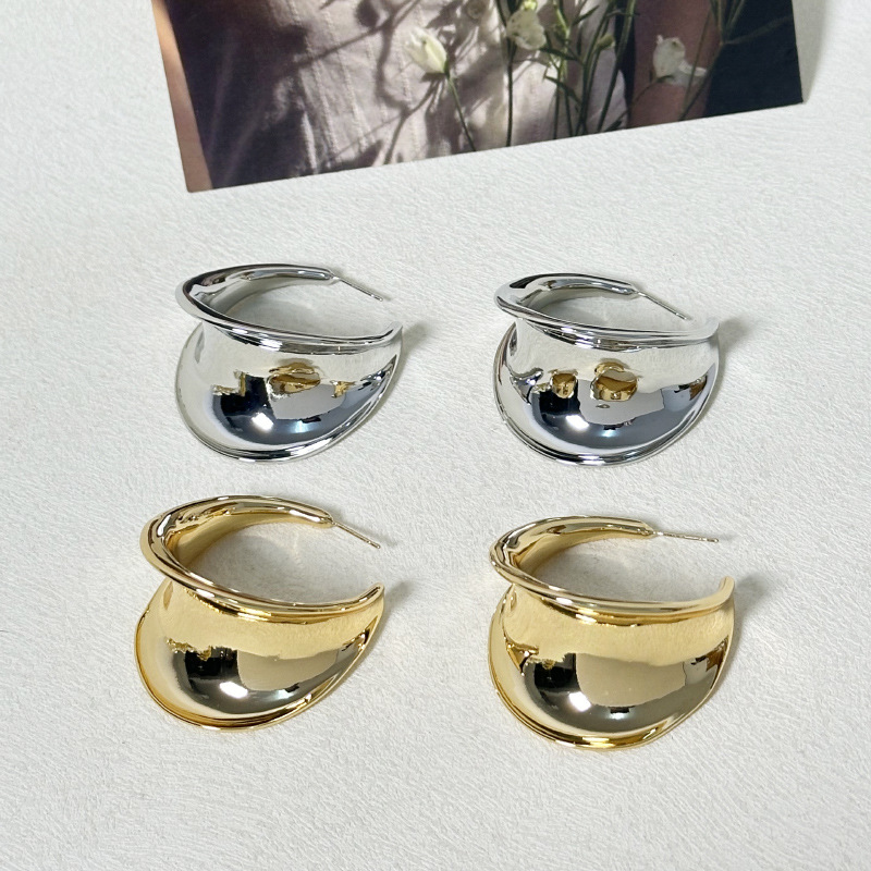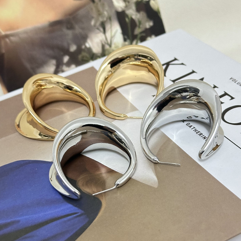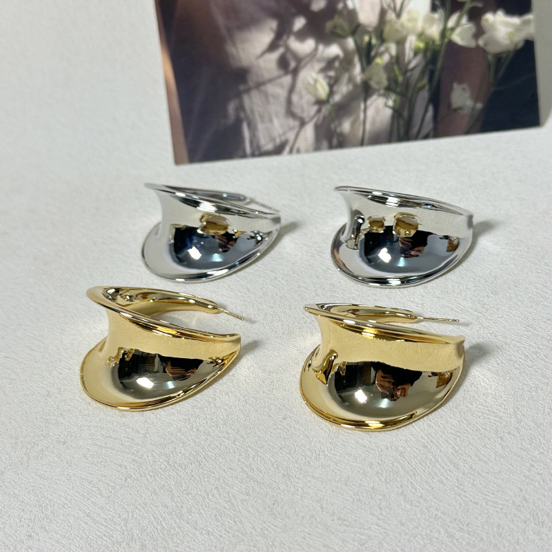 欧米の楊林の軽い豪華な高級感の金属の明るい顔の丸い線のイヤリングの冷たい風の気質の耳の輪の耳飾りの女性