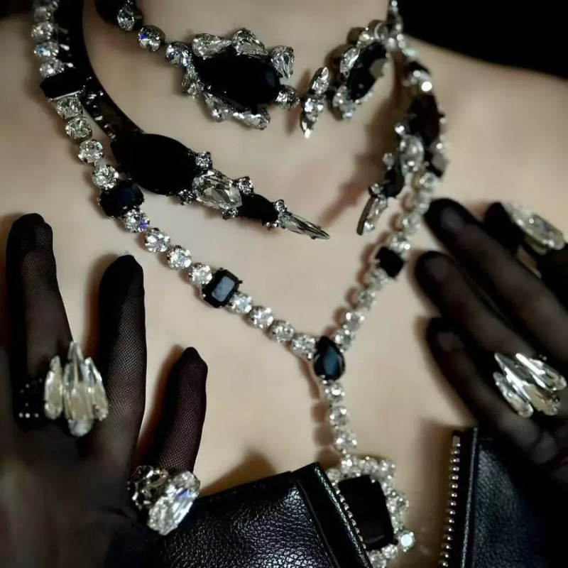 欧米風シンプルで個性的で贅沢な気質金属不規則溶岩フラッシュドリル首輪高級感chokerネックレス