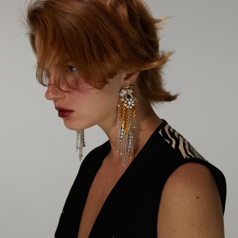 フランス式パリ風軽豪華高級感角型爆裂ロック穴真珠フラッシュイヤリング個性誇張気質ピアス