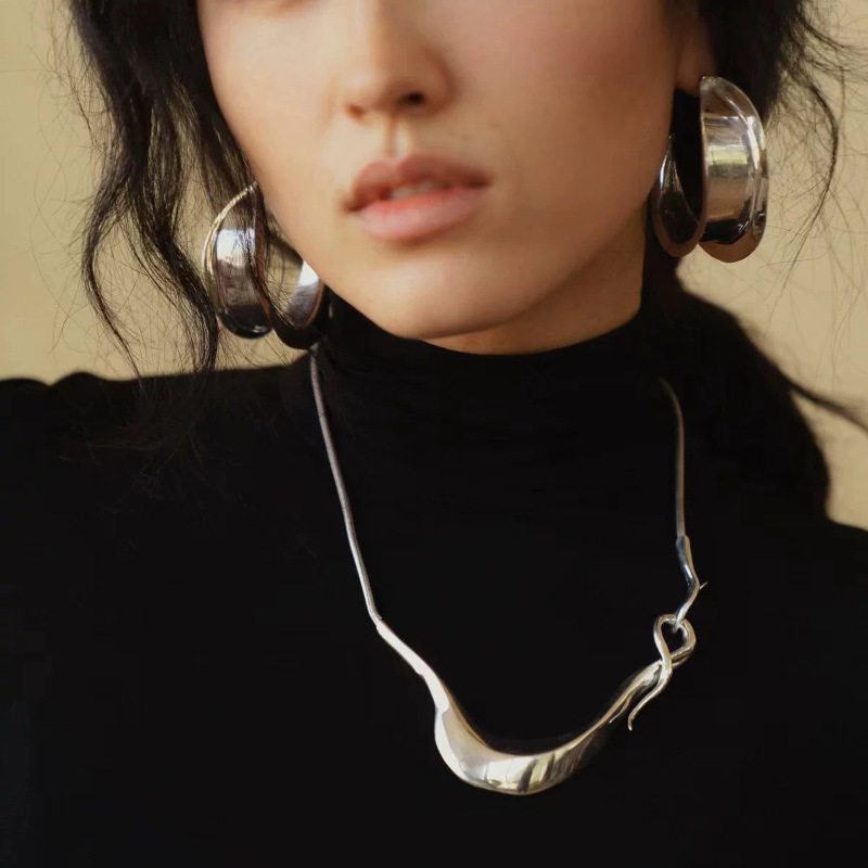 フランスの小衆デザイナーのシンプルな金属の明るい面の曲線の切断面の形のペンダントのネックレスの冷たい風の鎖の女性