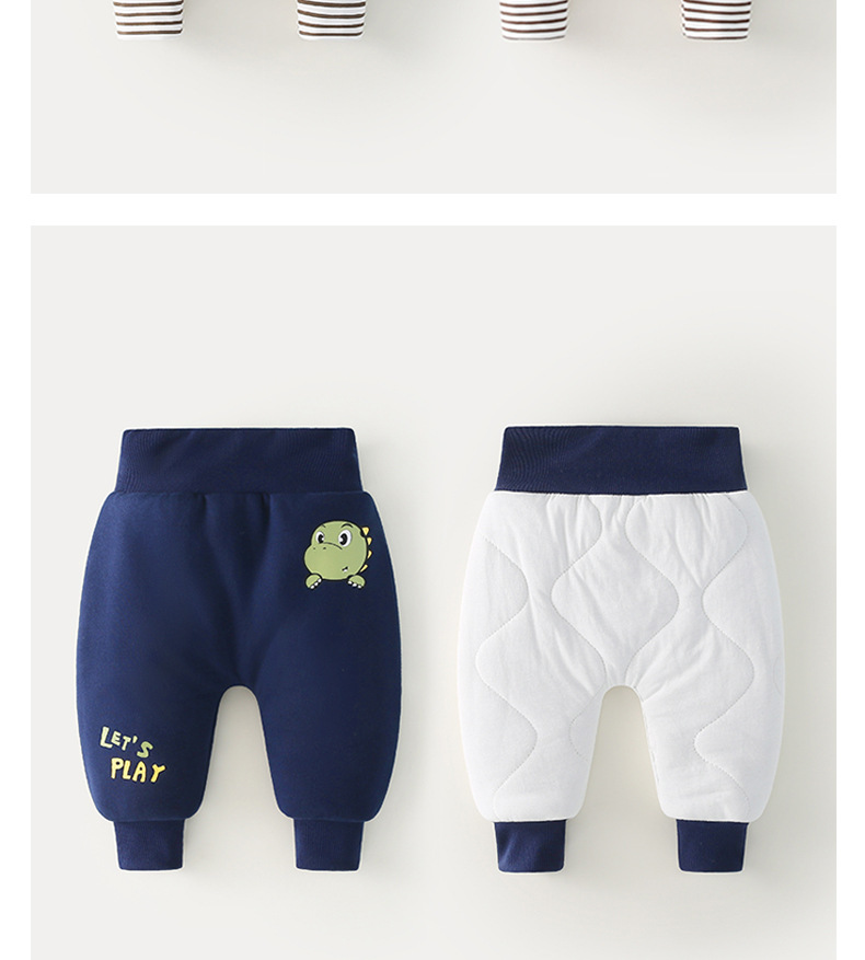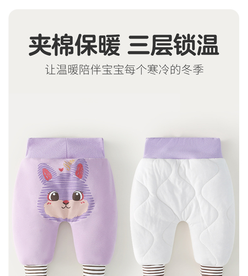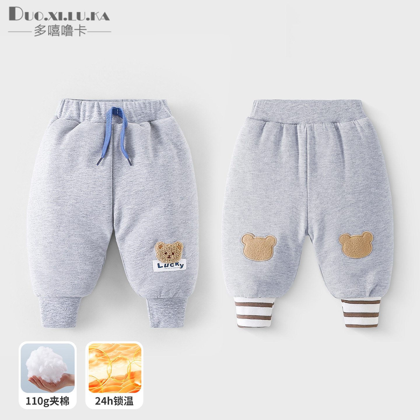 婴幼儿秋季夹棉卫裤男女宝宝卡通可爱长裤秋冬款外出加厚保暖裤子