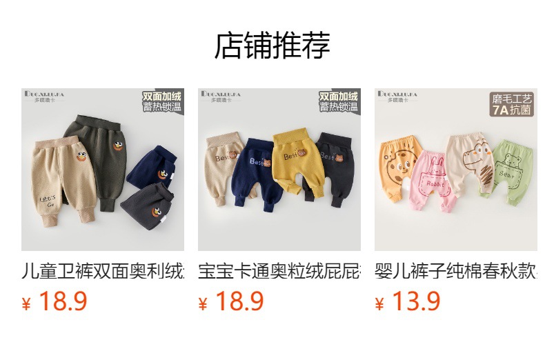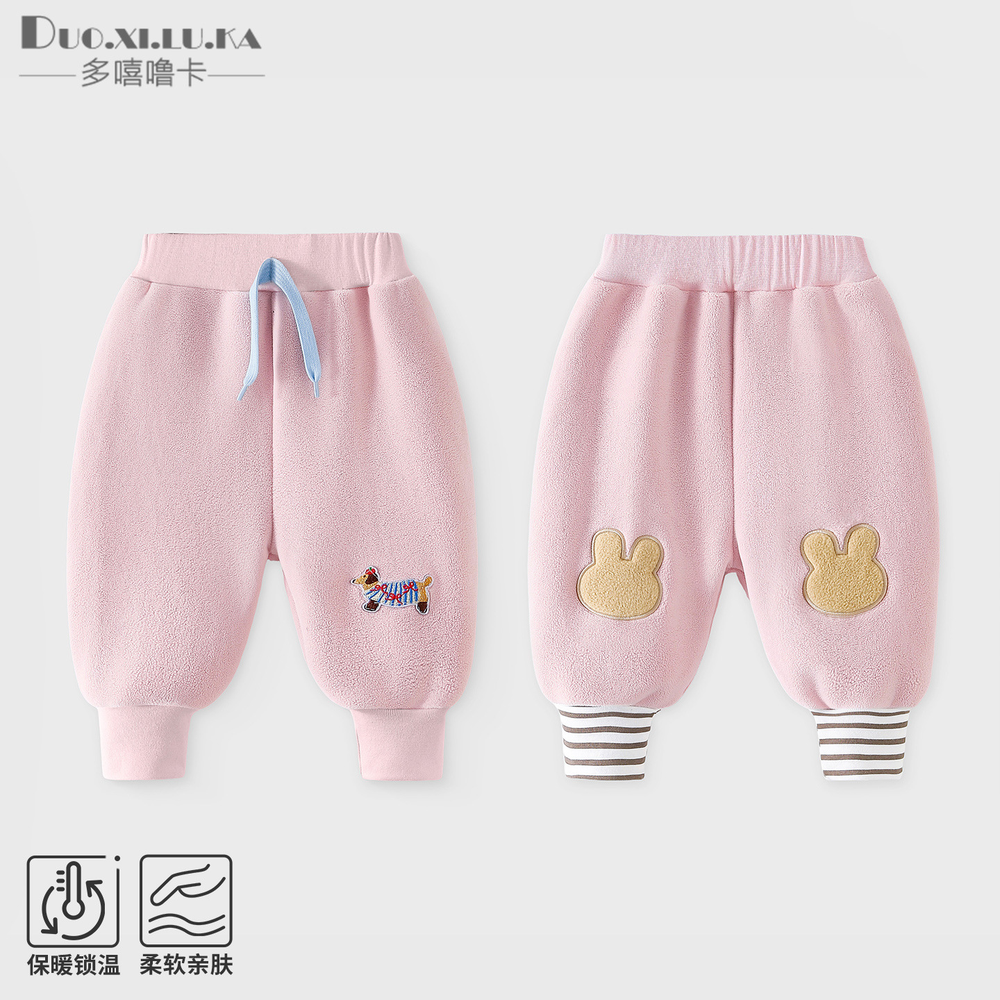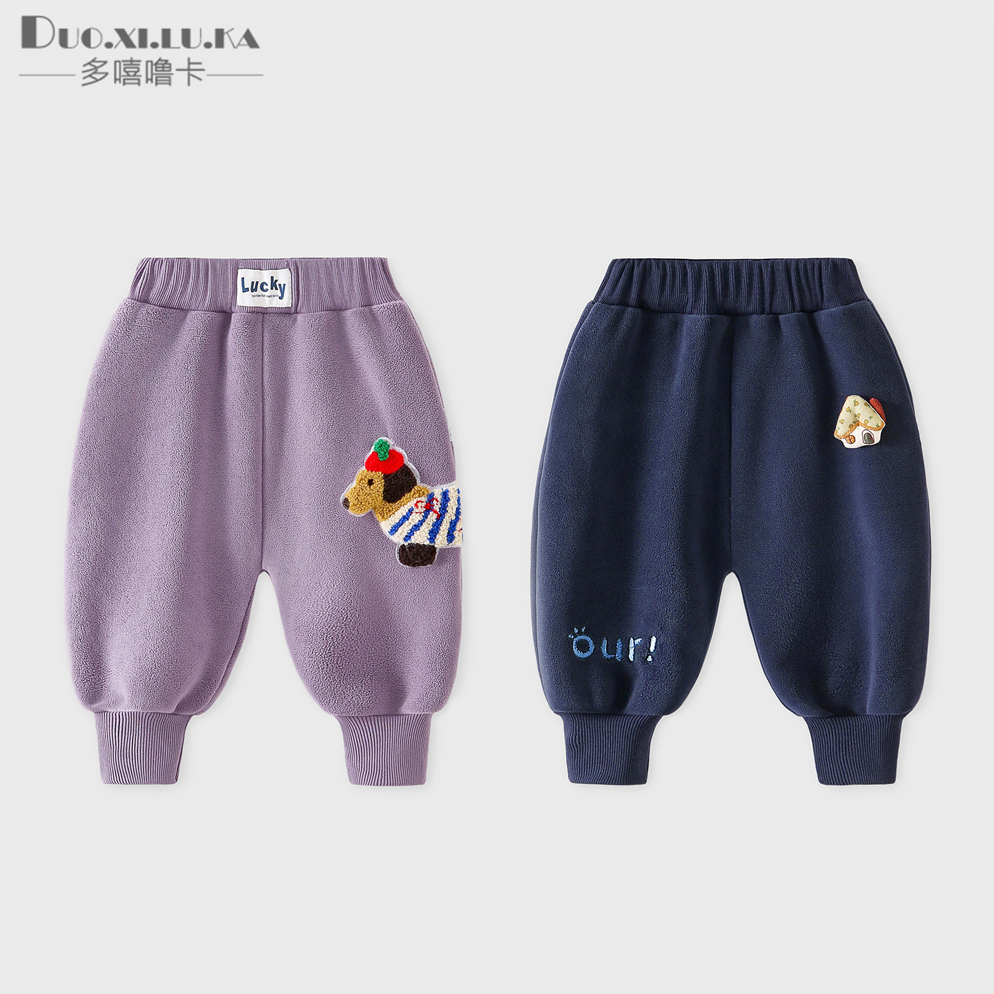 儿童秋季外出休闲裤男女宝宝双面奥利绒保暖裤秋冬款卡通可爱卫裤