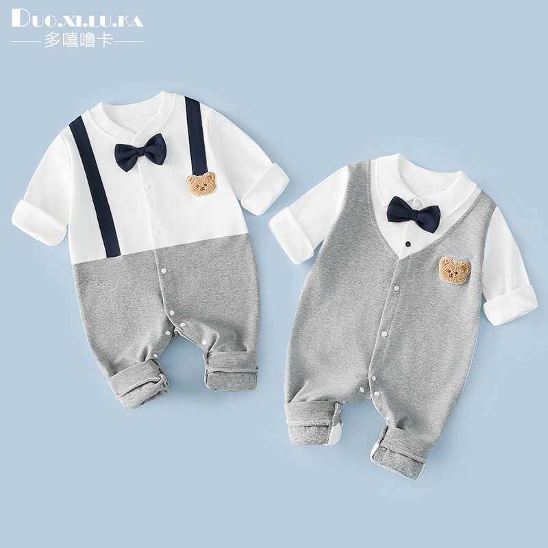 新入生の赤ちゃんの服春と秋の満月の赤ちゃんの純綿の連体服の男女の1歳の服の長袖は服を登りますかわいいです。