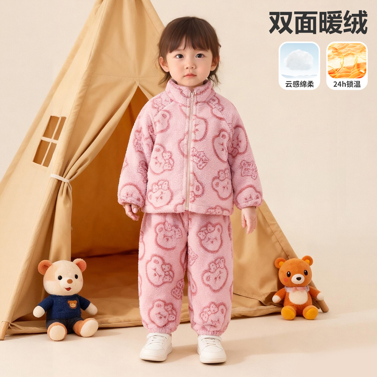 宝宝冬季加绒保暖居家套装男女宝宝长袖休闲服秋冬款卡通可爱套装