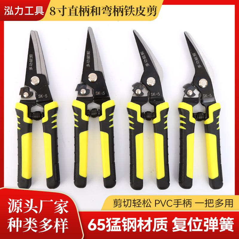 铁皮剪工业级高硬度多用电工剪锰钢加厚尖弯嘴剥线剪强力剪切神器