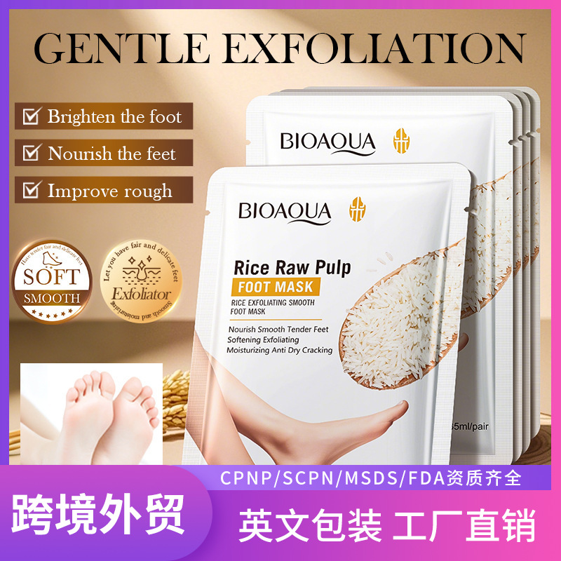 完全英語 BIOAOUA 米ピューレ角質除去スムージングフットマスク水分補給角質除去フットマスク外国貿易クロスボーダー