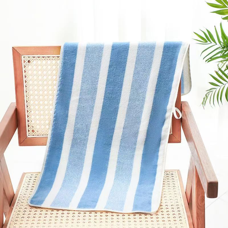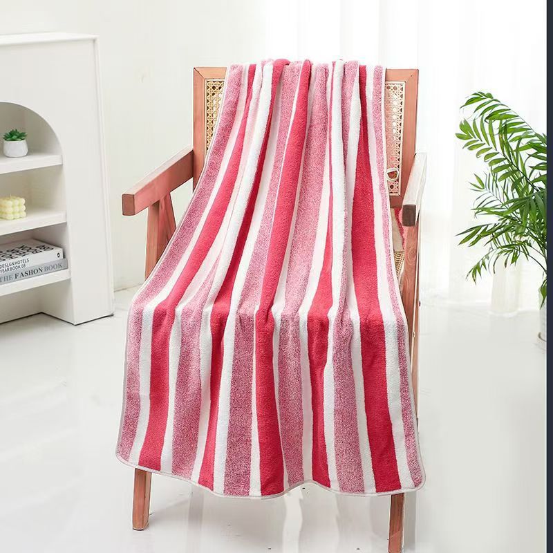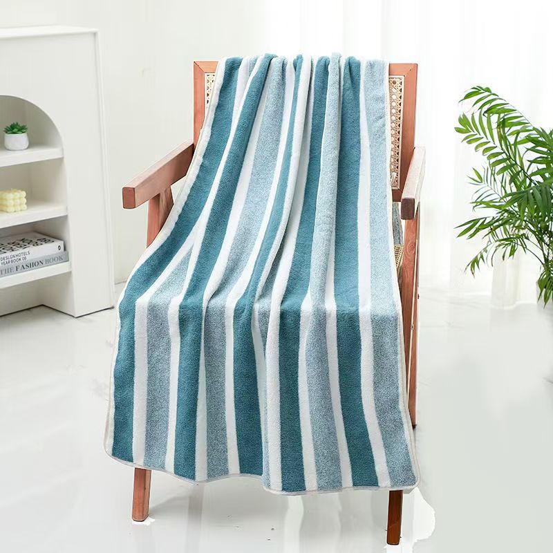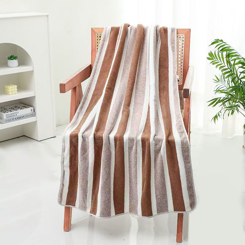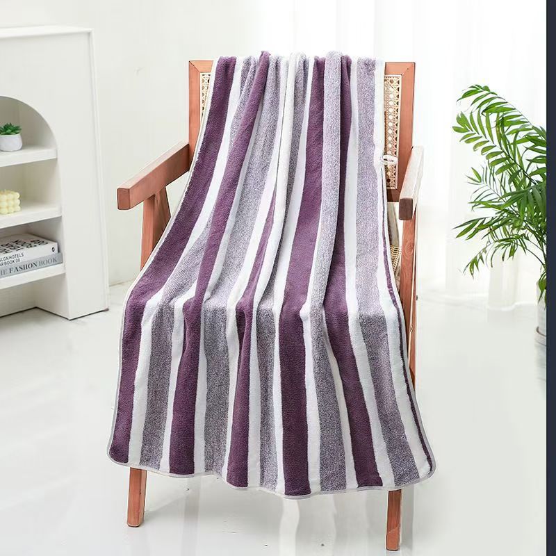 跨境电商供货珊瑚绒浴巾加厚超柔软吸水成人家用不掉毛条纹沙滩巾