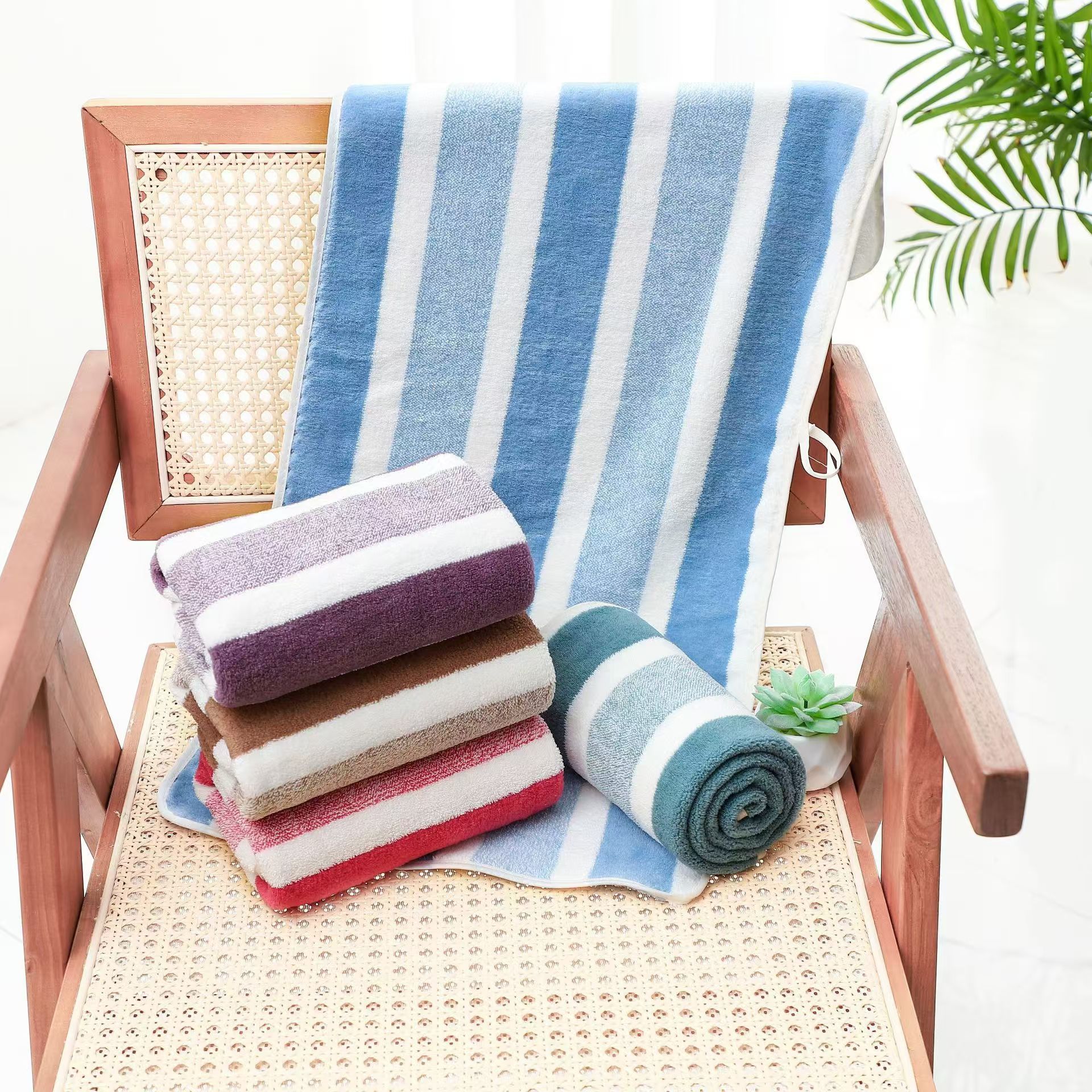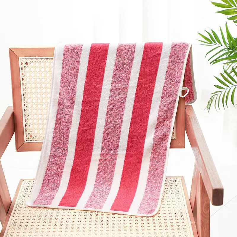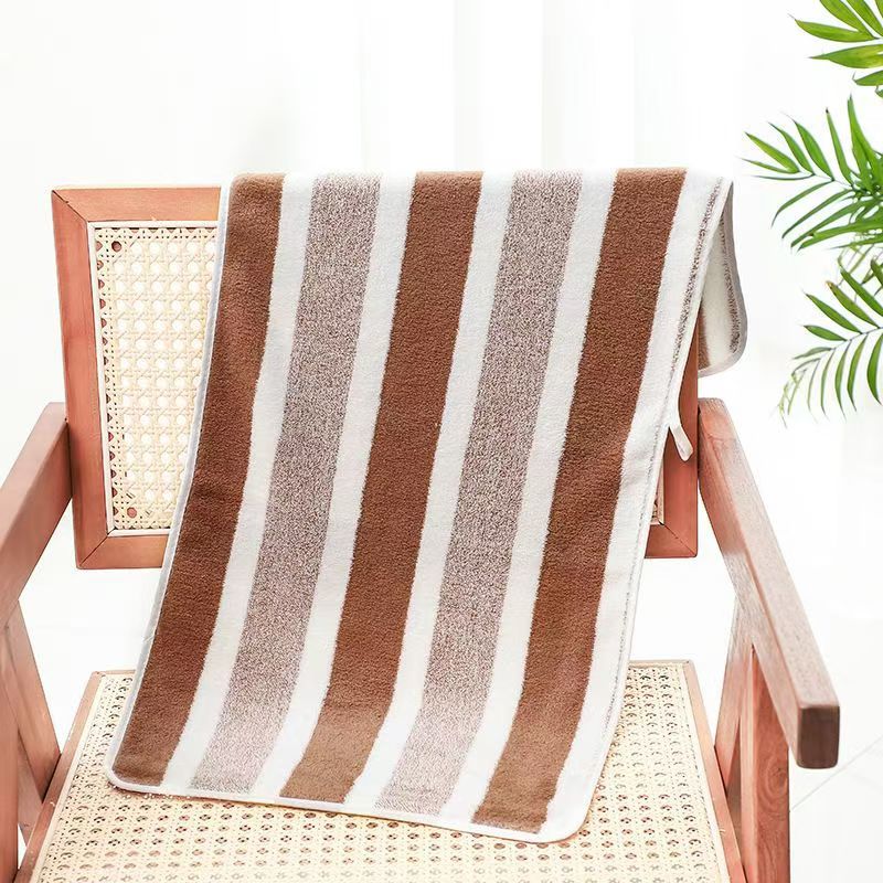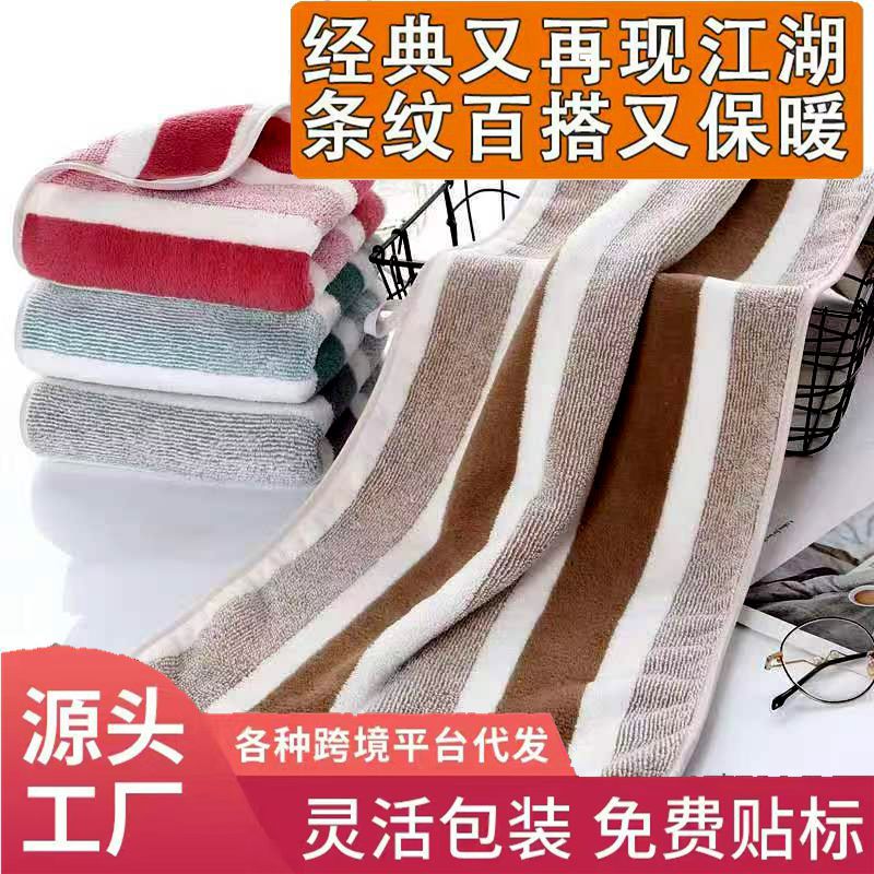跨境电商供货珊瑚绒浴巾加厚超柔软吸水成人家用不掉毛条纹沙滩巾