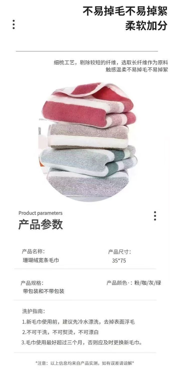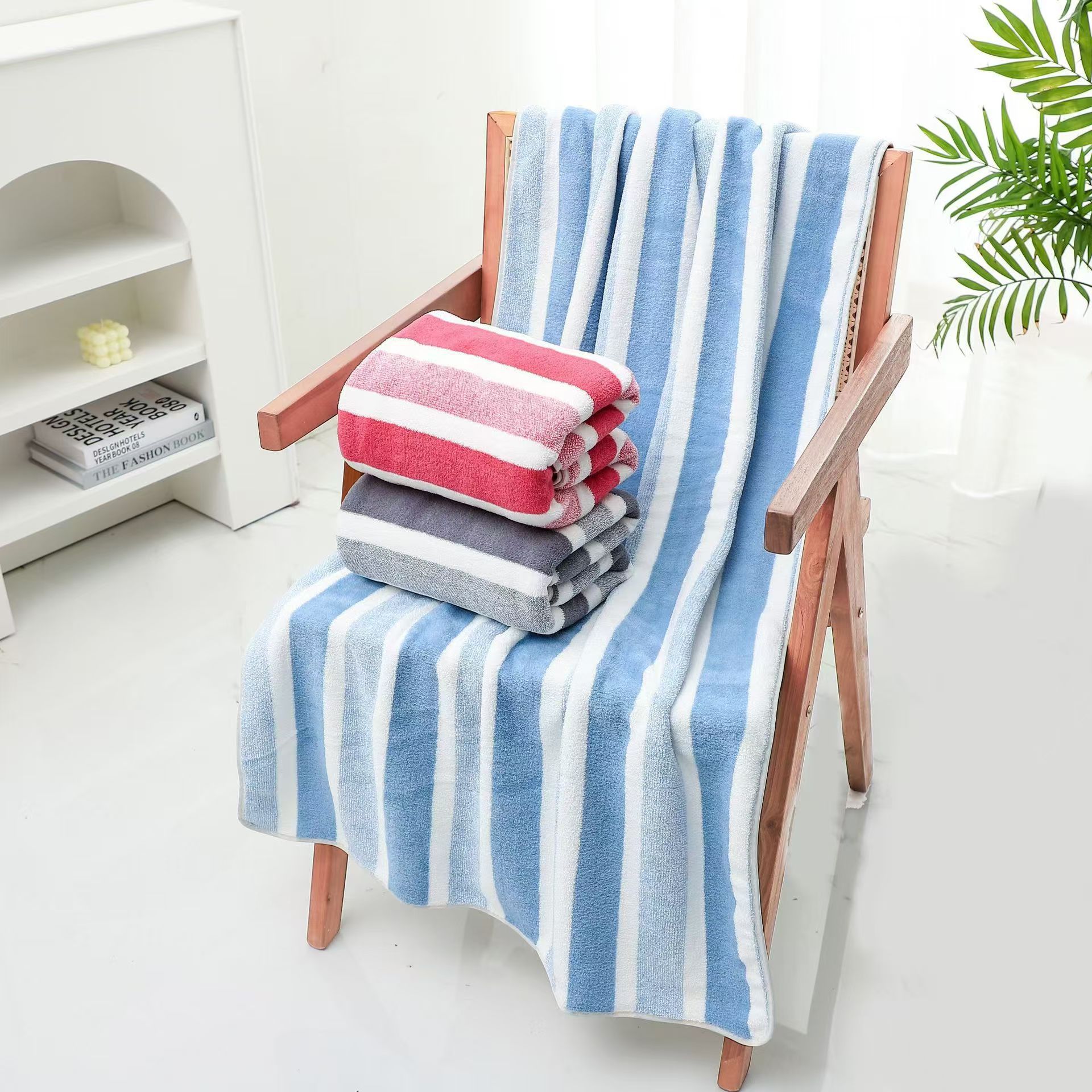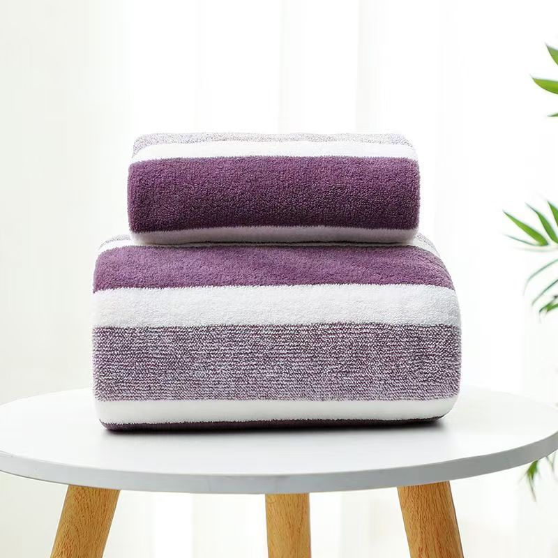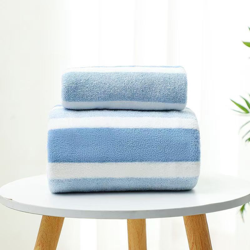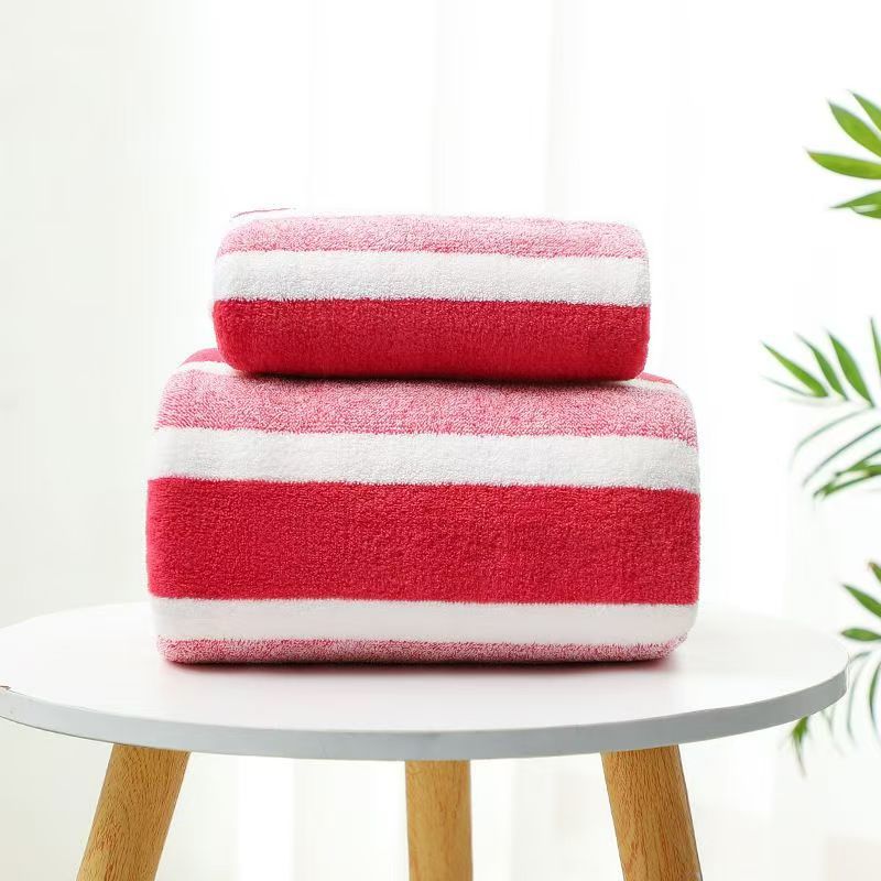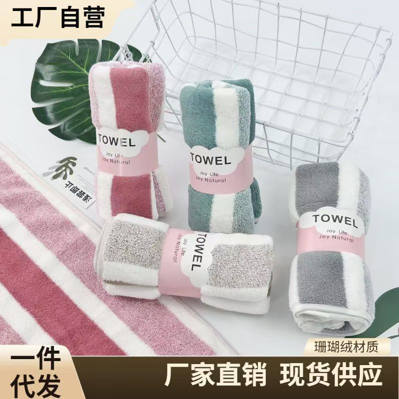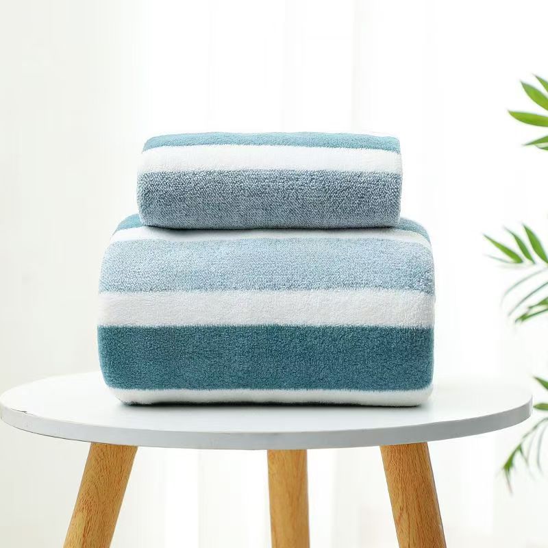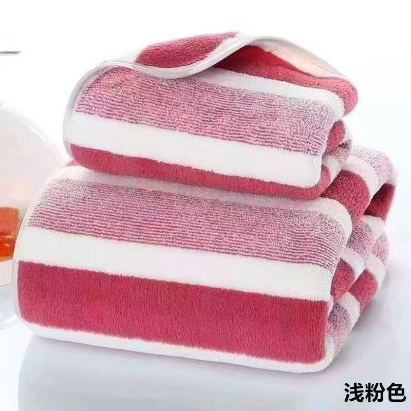 クロスボーダー代理店ワープコーラルベルベットタオルバスタオルセットソフト吸収性増粘ワイドカラーストライプタオルバスタオルセット