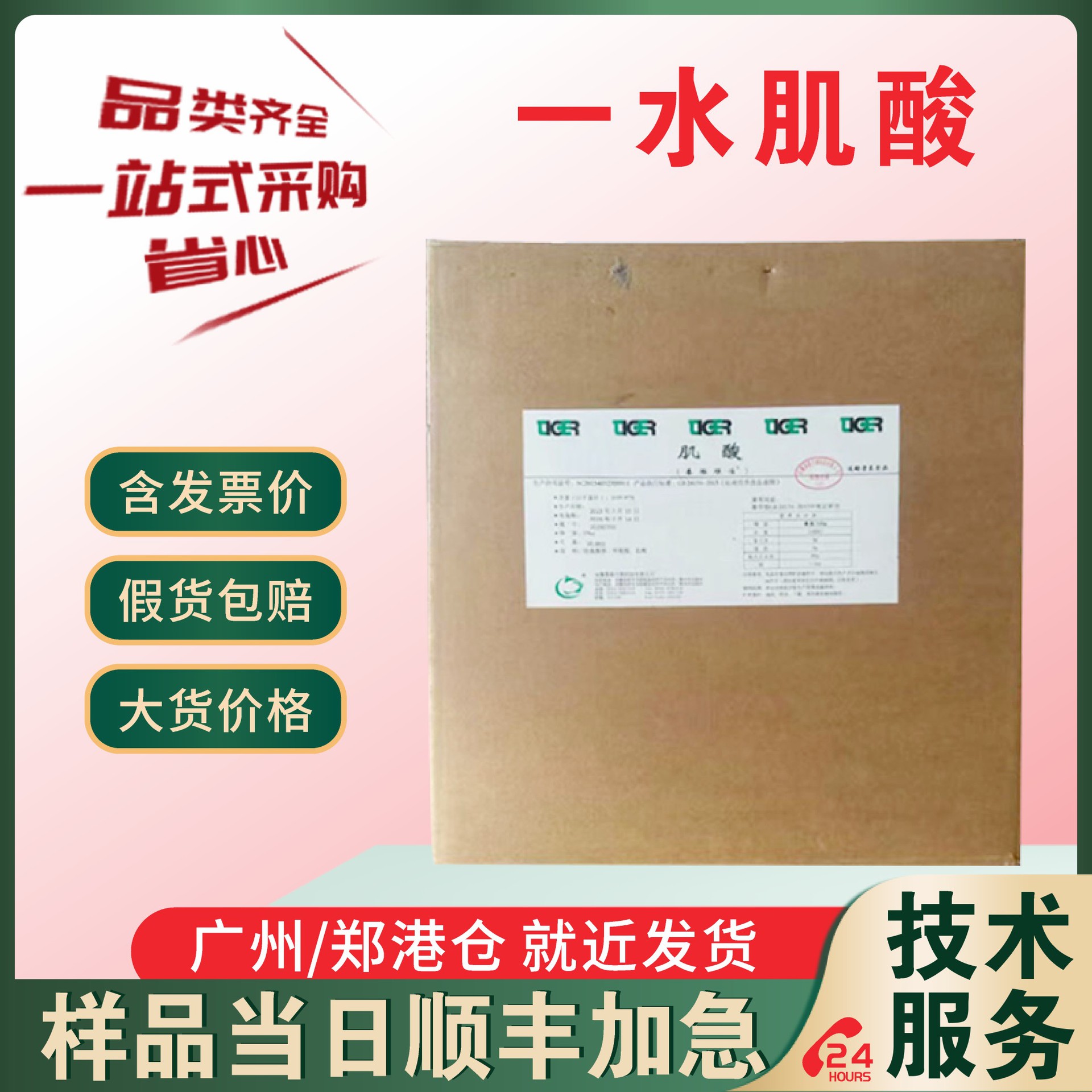 現物ストレート一水クレアチニン98% 食品級クレアチニン栄養強化剤25kg/箱