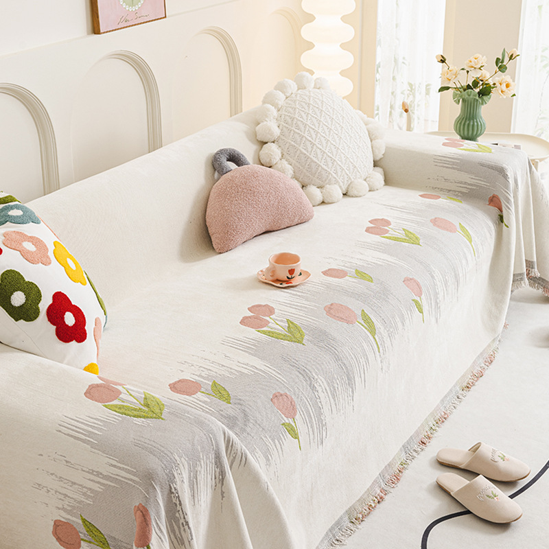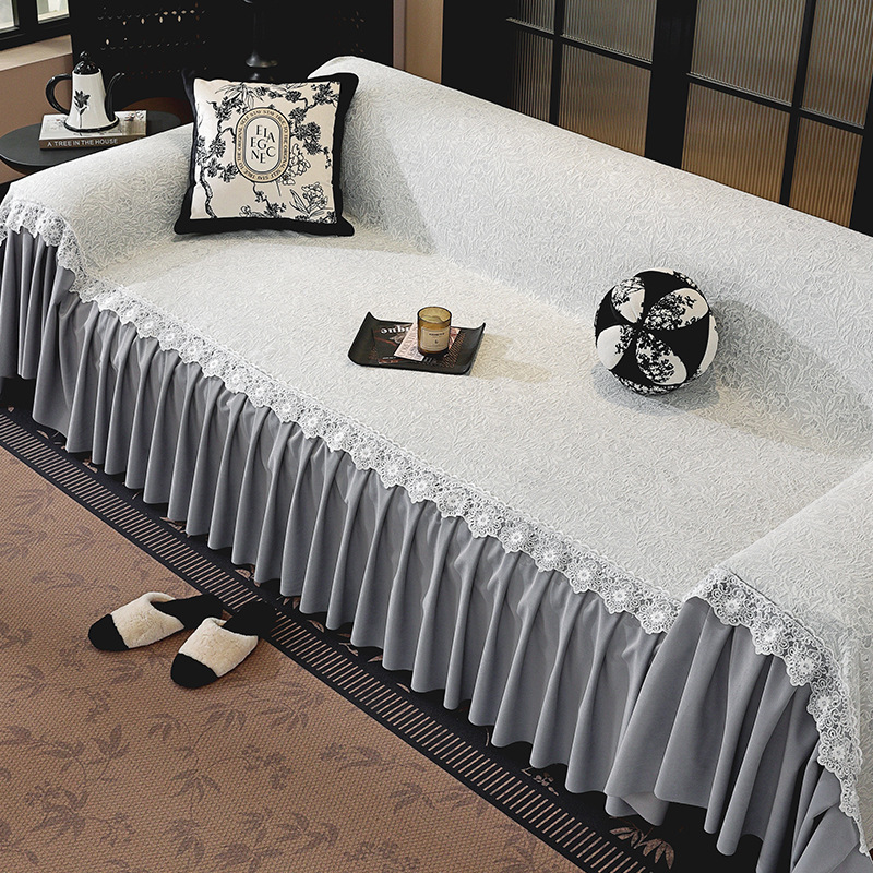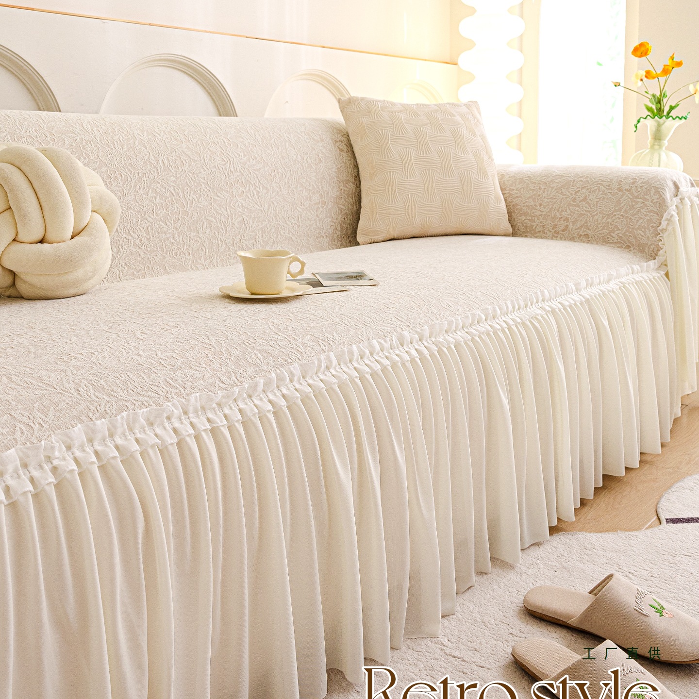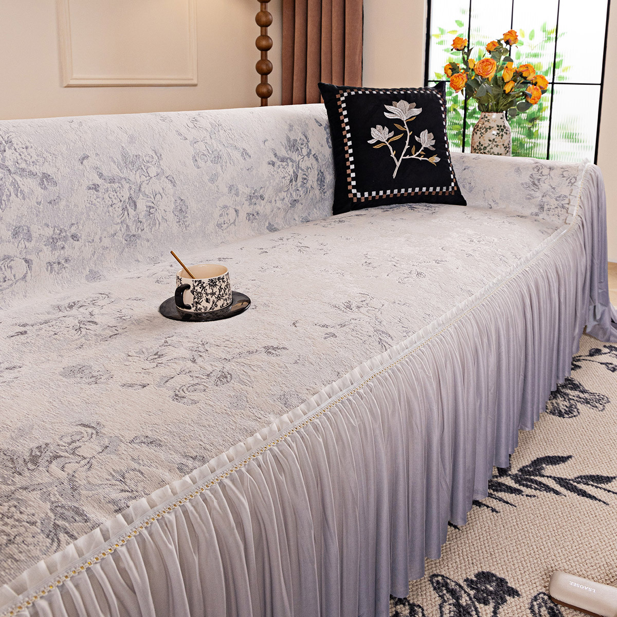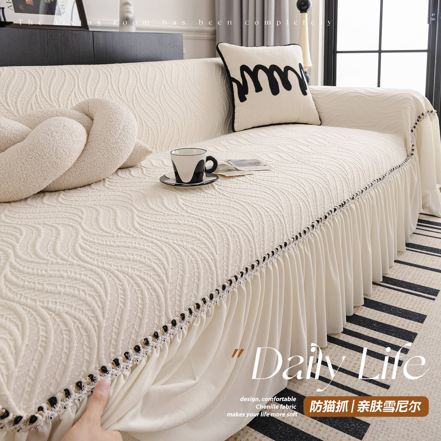 法式裙边雪尼尔沙发巾2025新款固定防滑四季通用沙发盖布巾防猫抓
