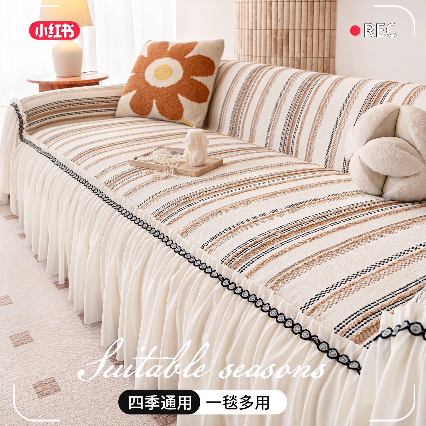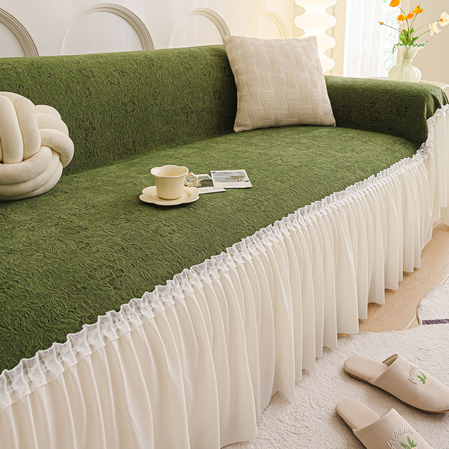 裙边雪尼尔沙发盖布四季通用2025新款高级感防滑沙发巾一片式坐垫