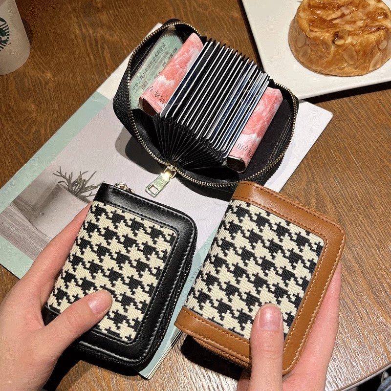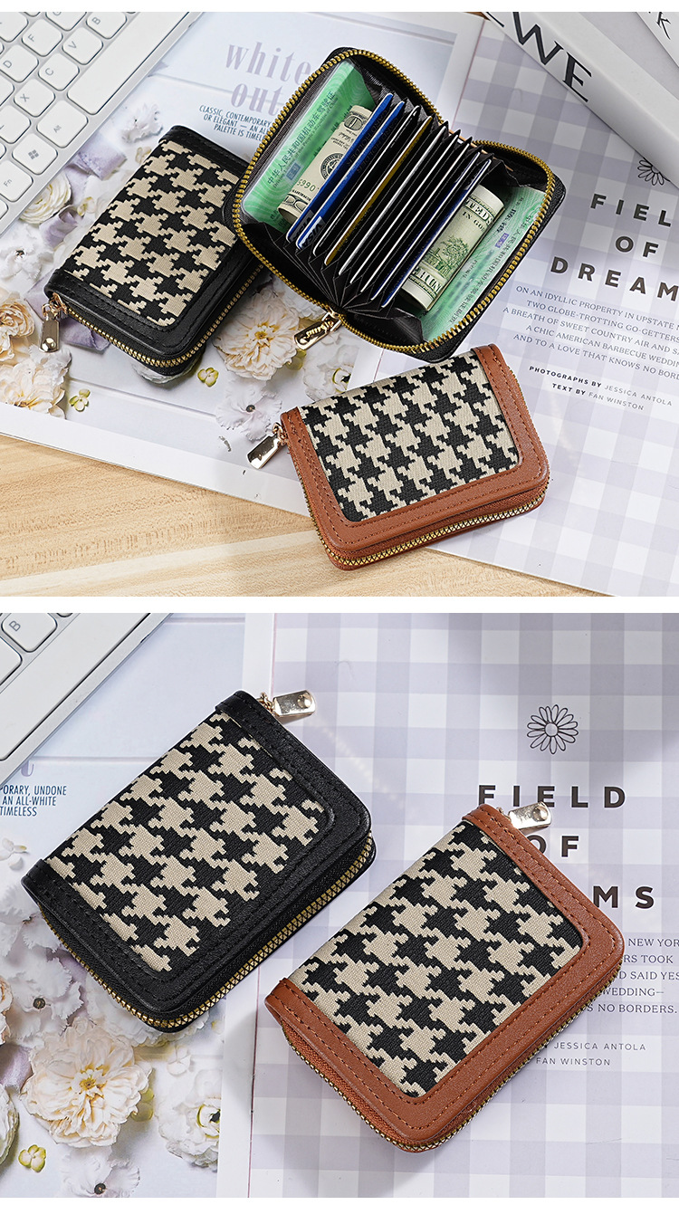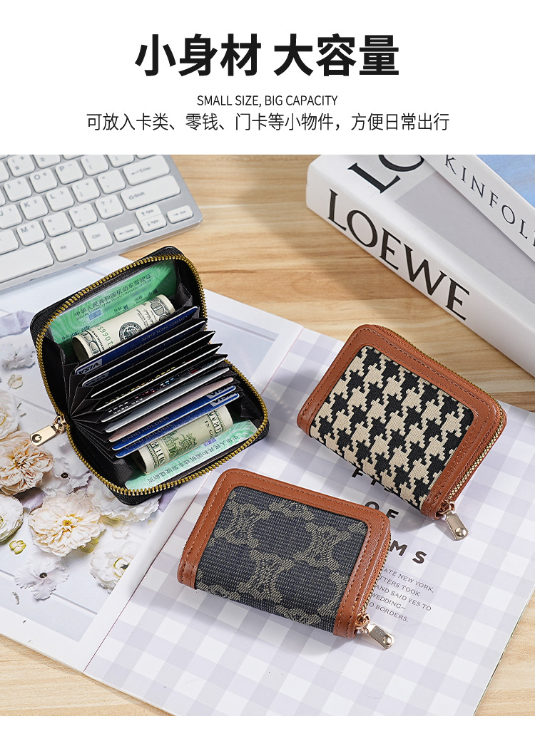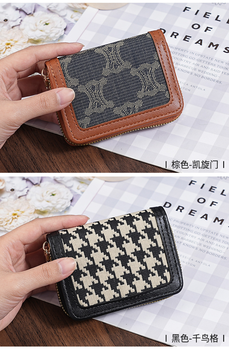 女性用の新しいスタイルのIDカードホルダー、小さくて絶妙、ハイエンドの人気の千鳥格子運転免許証ツーインワン、大容量、複数のカードスロット