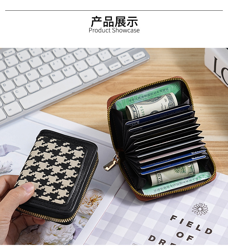 新型の証明書のカードの包みの女性の小さくて精巧で高級な千鳥の格の運転免許証の二合一の大容量の多カードのカードのカバー