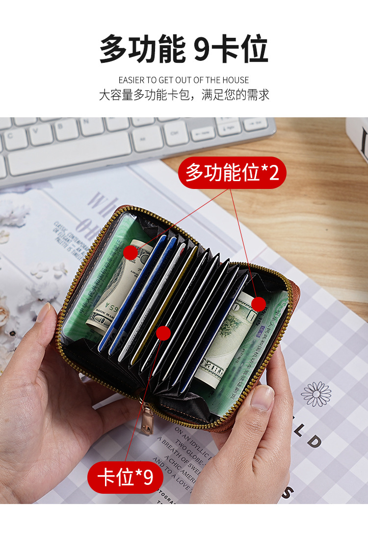 2025 新ファッションショートオルガンバッグレディースクママルチカードスロットジッパー財布学生カードバッグドキュメントバッグトレンディ