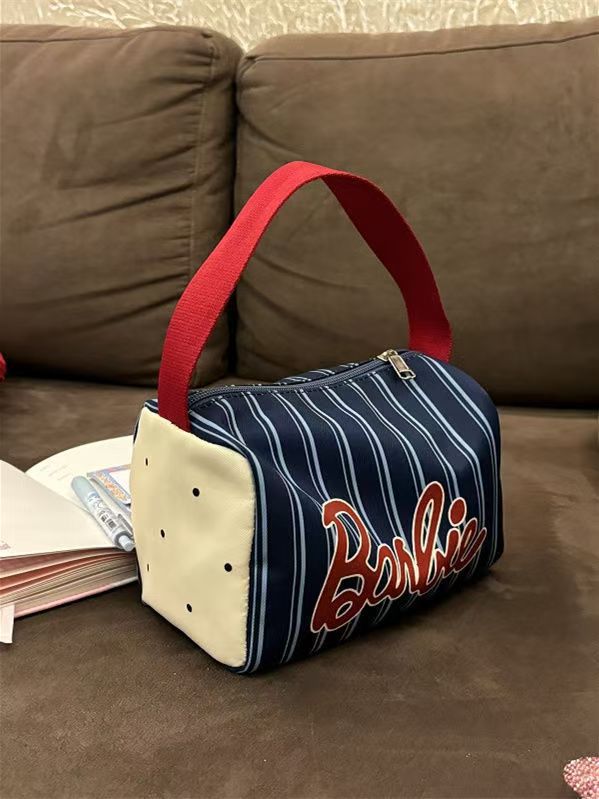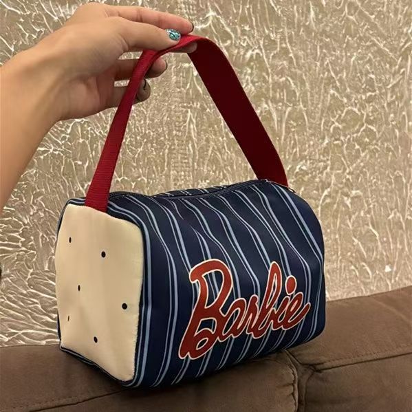 かわいい落書きバケツバッグinsプリント円筒バッグキャンバス弁当袋韓風少女は弁当箱を持っています。