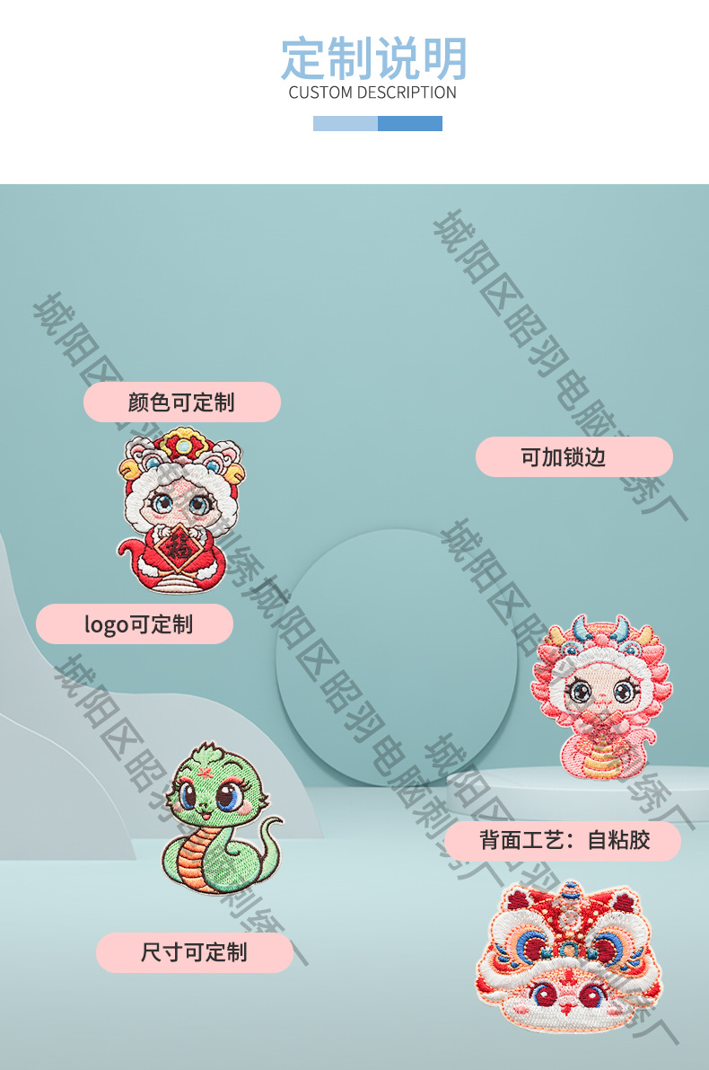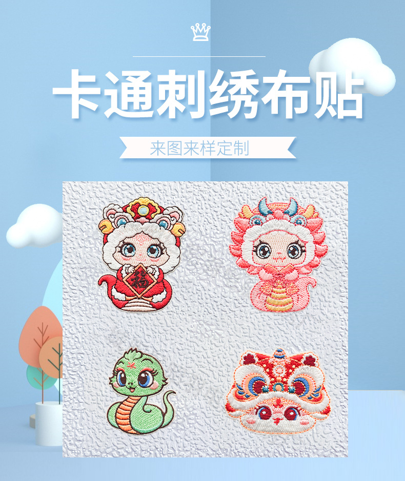 2026新品马年刺绣布贴春节装饰自粘贴新年国风醒狮衣服熨烫补丁贴