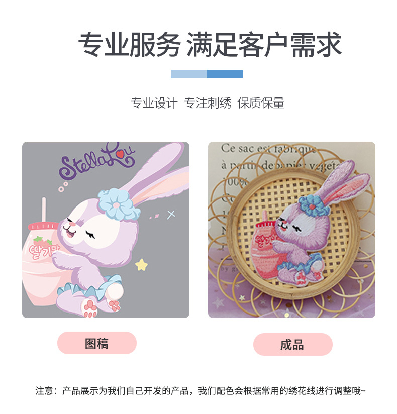 かわいい漫画のウサギの刺繍パッチ布ステッカー衣類バックパック靴と帽子装飾布ステッカー自己粘着刺繍ラベル