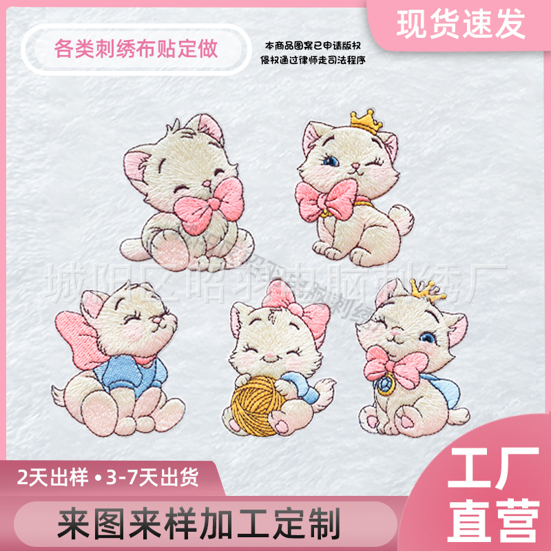 かわいい子猫刺繍布貼り漫画バッグ装飾服パッチDIY携帯ケース手帳自己貼り付け