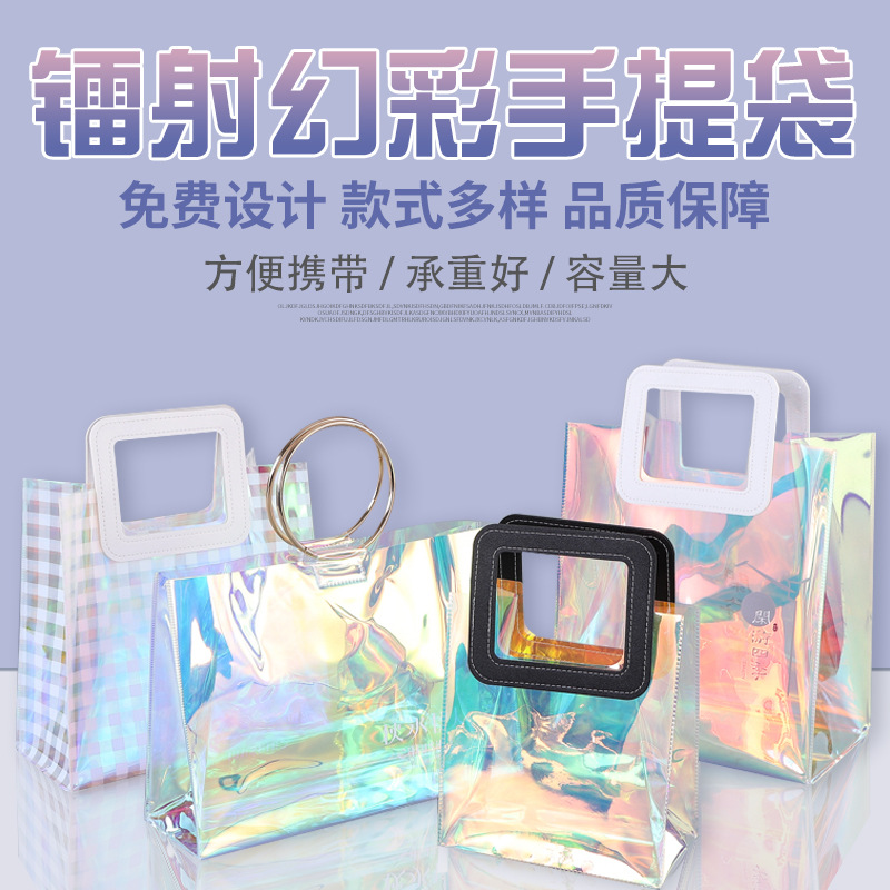 Pvcレーザー手提げ袋透明プラスチック幻彩ゼリーバッグ虹tpuネットレッドお土産袋
