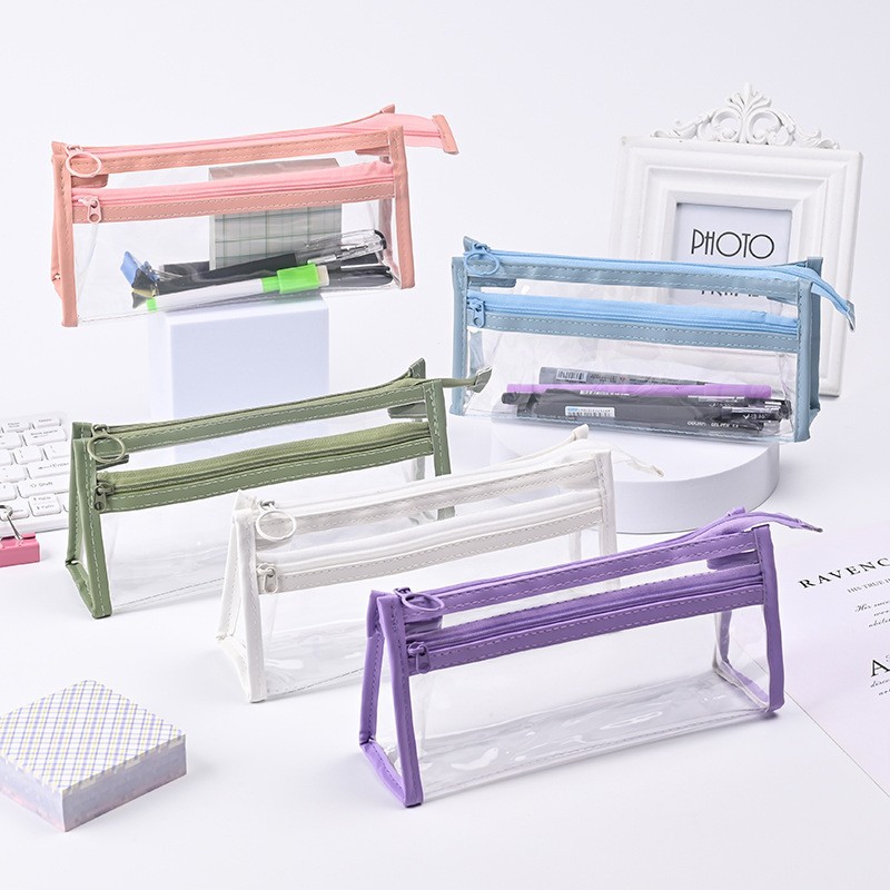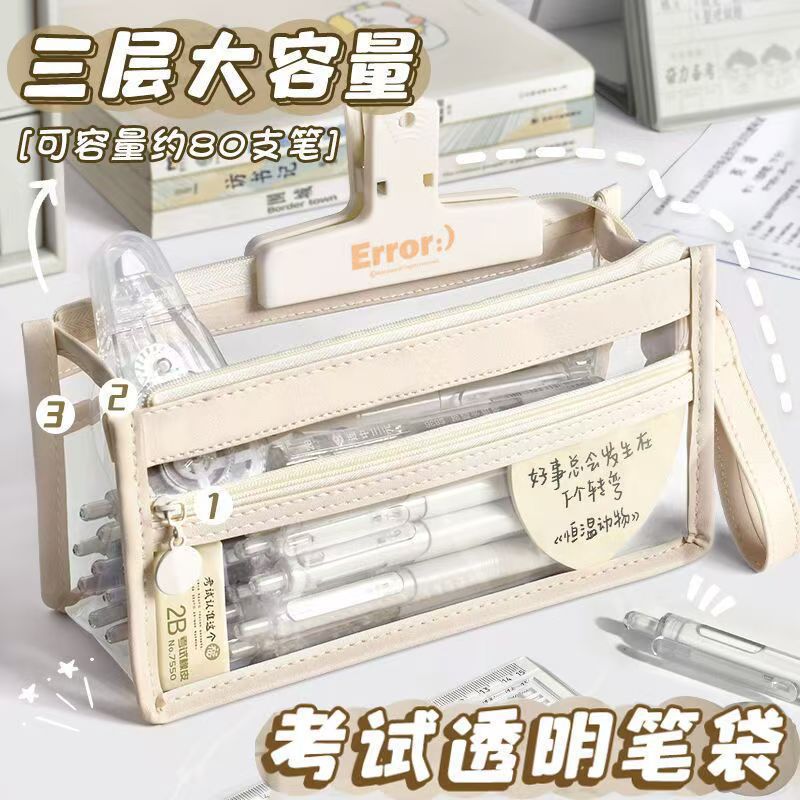 ins风学生透明pvc笔袋考试专用大容量简约高颜值文具盒防水铅笔盒
