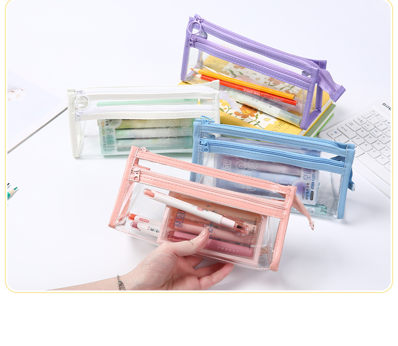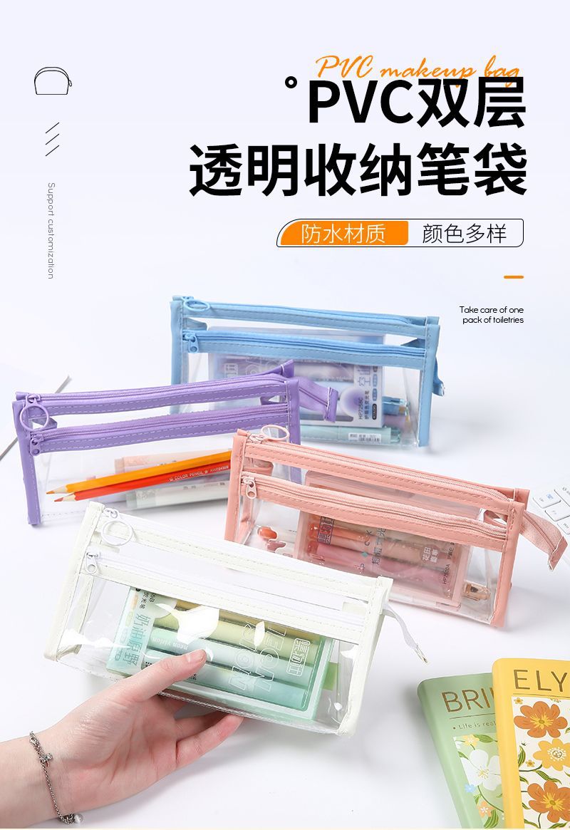 透明双层笔袋考试用大容量简约文具袋高颜值环保化妆品洗漱收纳袋