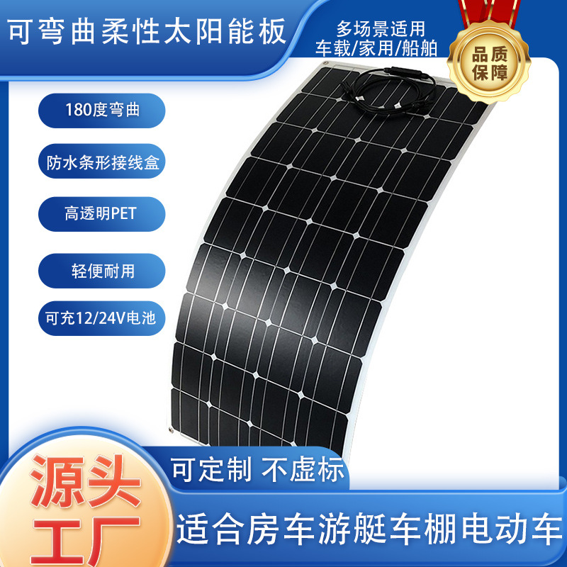 フレキシブルソーラー充電板100W単結晶高効率トレーラーバルコニー150W200W12V24V電池充電