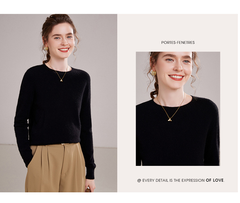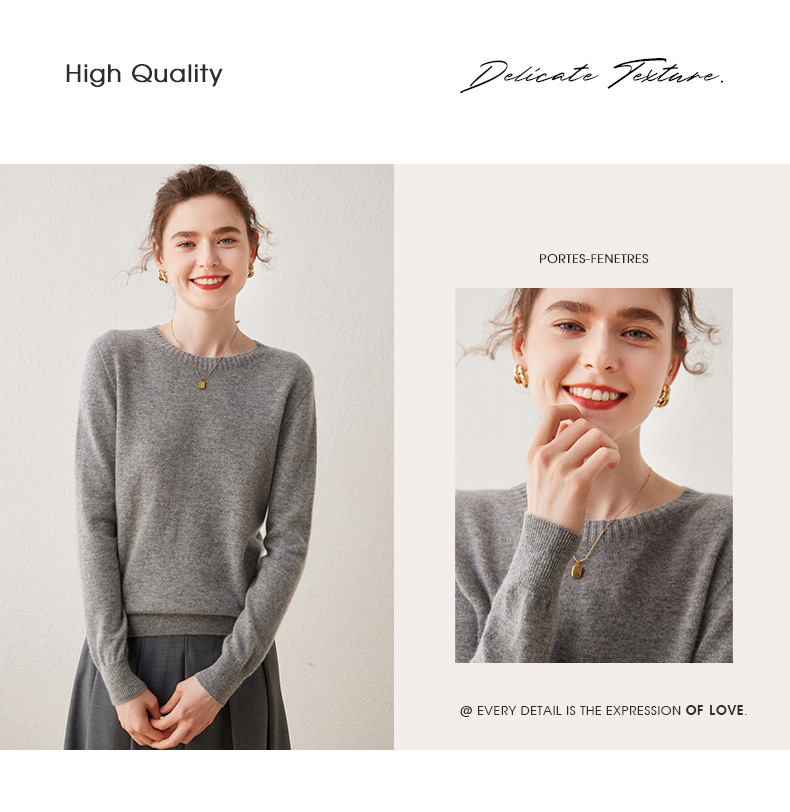 カシミヤセーター レディース ラウンドネック 新作 無地 プルオーバー ゆったりトップス インナー セーター ニット ウール ベースレイヤー 秋冬