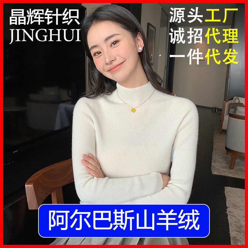 120克100%纯山羊绒衫女无缝金银丝半高领内搭春秋薄款针织毛衣